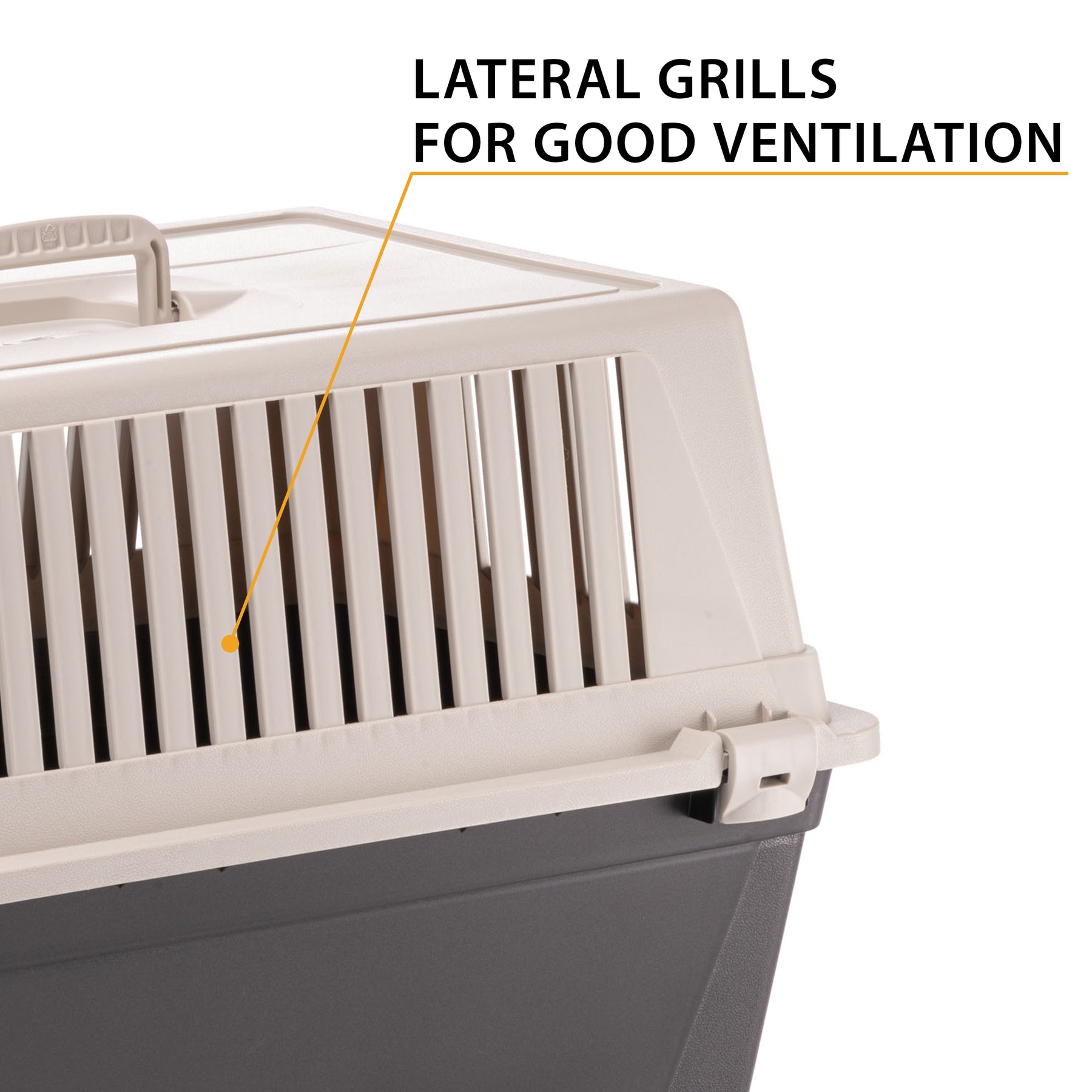 L'Atlas EL représente la version la plus simple de nos transports pour chats et chiens de petite taille, il a de multiples fonctions. L'Atlas EL est facile à transporter avec vous, grâce à sa poignée fixe et est idéal pour voyager avec vos animaux de compagnie dans les moyens de transport les plus courants (voiture, train, bateau, avion). Ce panier de transport en plastique pour chats et petits chiens est livré avec une porte en fer plastifié. Il est très robuste, grâce à son système de fixation avec pinces à ressort latéral. Il a aussi des grilles d'aération latérales, qui assurent une ventilation suffisante à l'intérieur du panier.