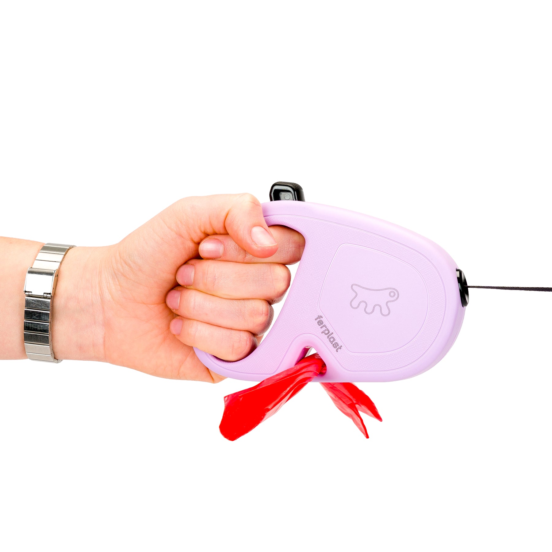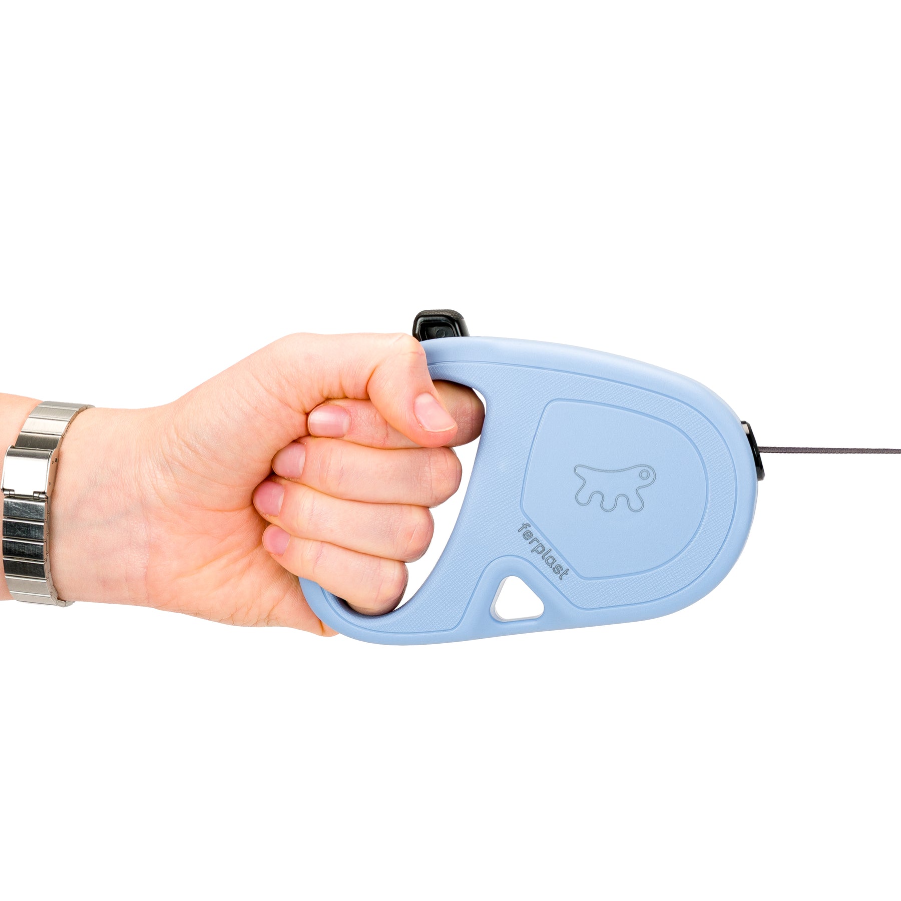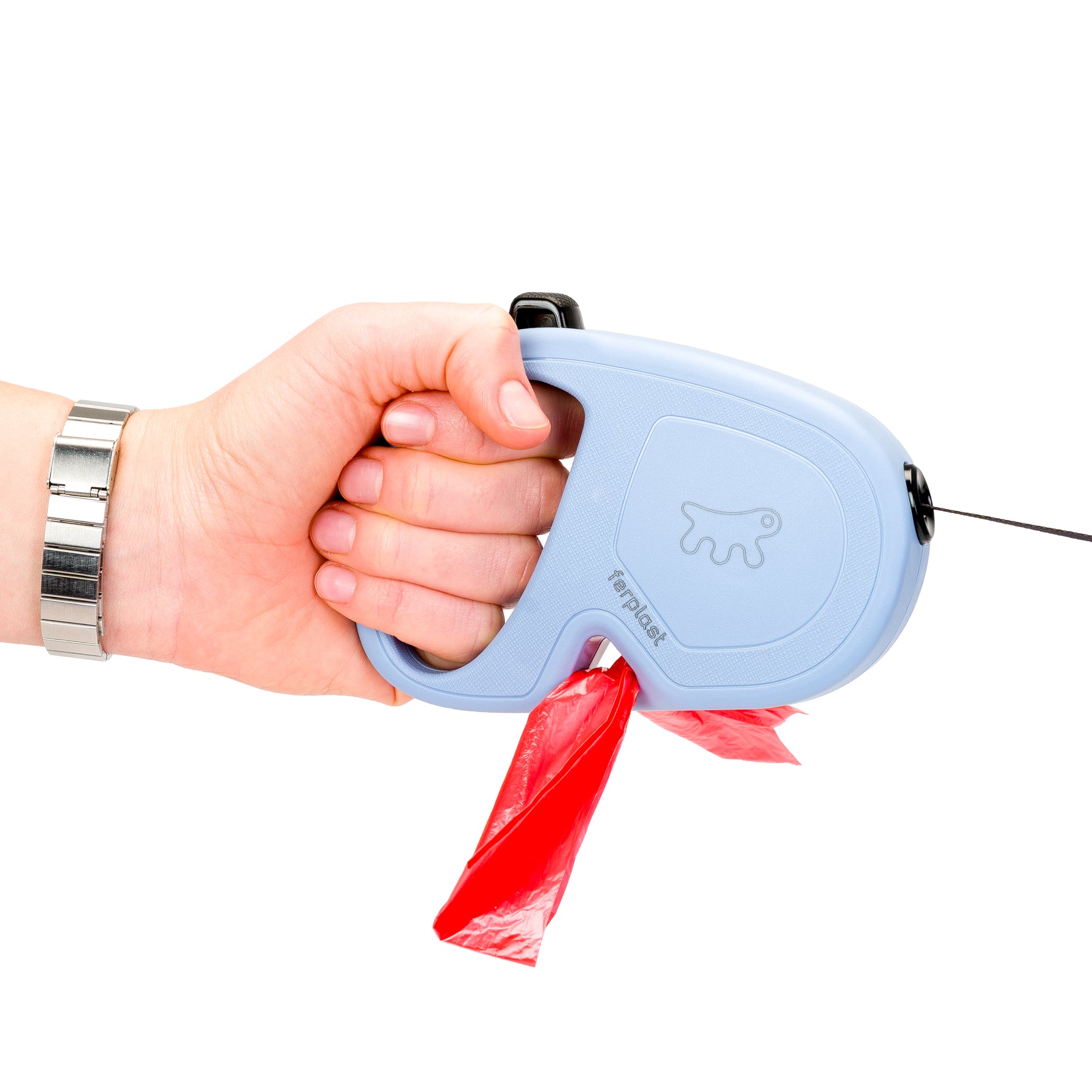 La laisse extensible Flippy One est compacte et légère, avec une poignée ergonomique et confortable. L'emplacement pour accrocher le porte-sac hygiénique est pratique et est intégré dans la coque, afin de ne causer aucune gêne et vous permettant de transporter confortablement ces accessoires indispensables pour la promenade.