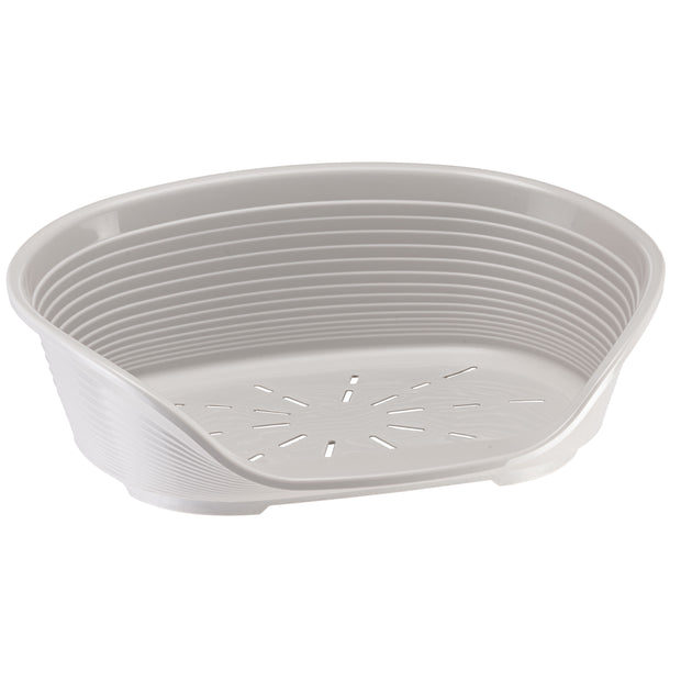 Il s'agit d'une corbeille d'intérieur en plastique très confortable, idéale pour chiens et chats. Jetez un oeil à la conception : de forme arrondie, les côtés sont hauts et confortables et l'avant du produit est facilement accessible. Cette corbeille possède un repose-tête, utile pour votre animal de compagnie, des pieds anti-dérapants, et un fond perforé pour permettre une bonne circulation de l'air.