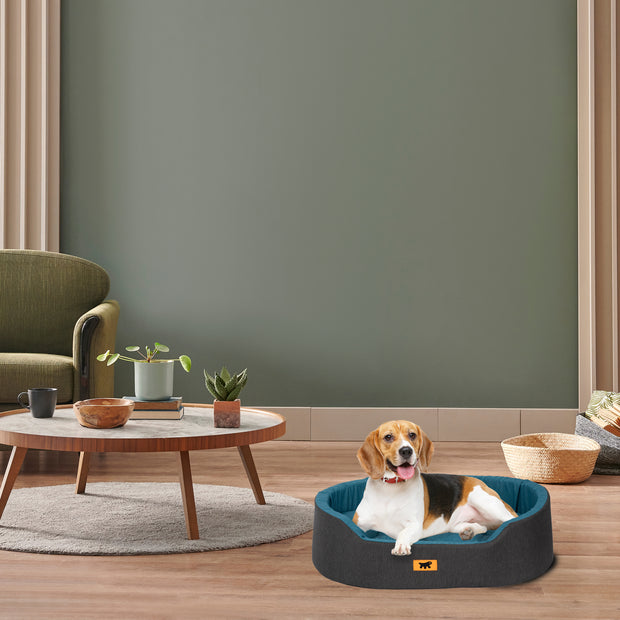 Le couchage pour chiens et chats Dandy a une forme ovale confortable, des côtés latéraux élevés, un rembourrage intérieur doux et un coussin confortable à double face. Sur le côté avant, l'entrée est abaissée pour permettre un accès facile à l'animal. Le couchage est entièrement recouvert de coton pur, il est proposé dans des combinaisons de couleurs sympathiques. Est lavable à la main à une température maximale de 30°C.