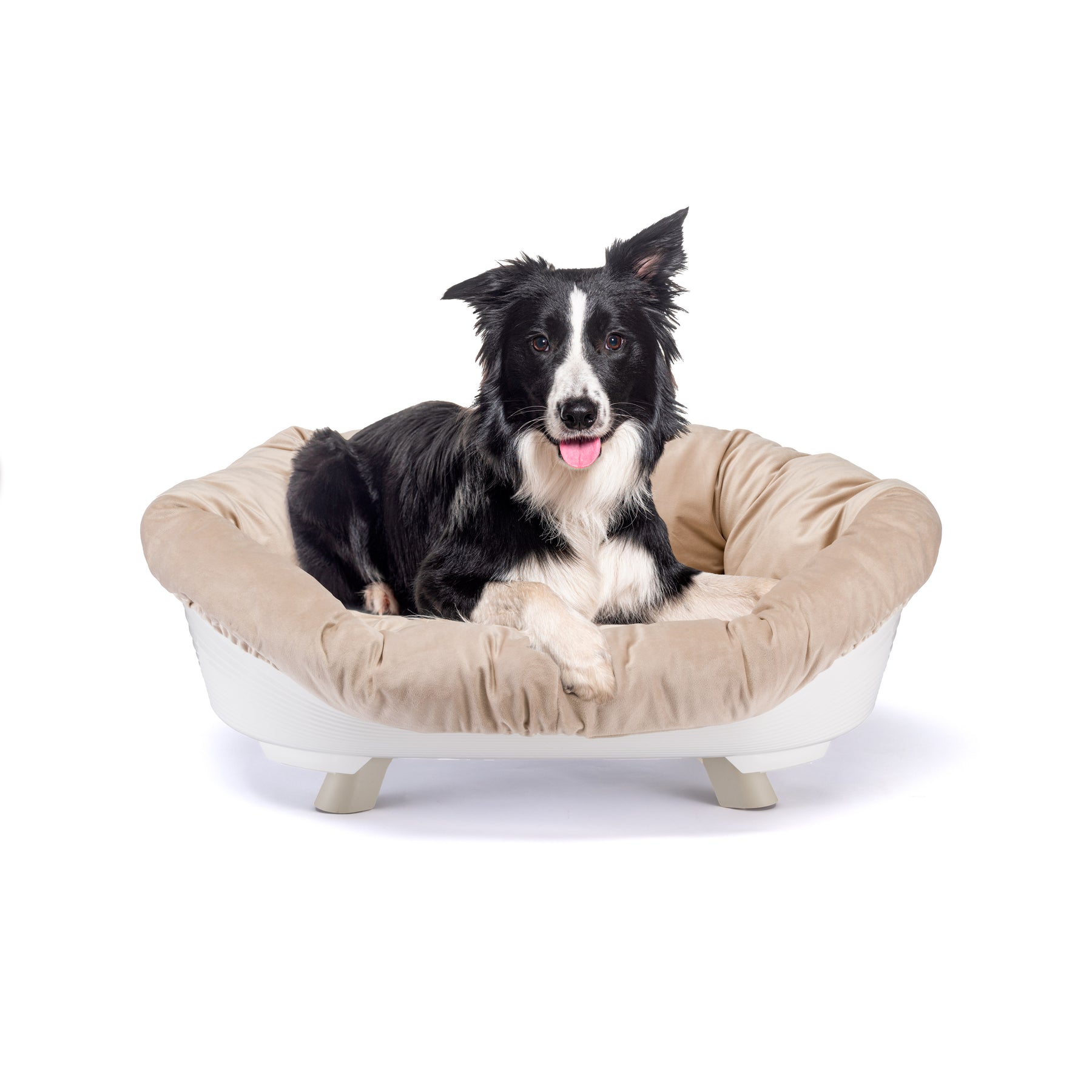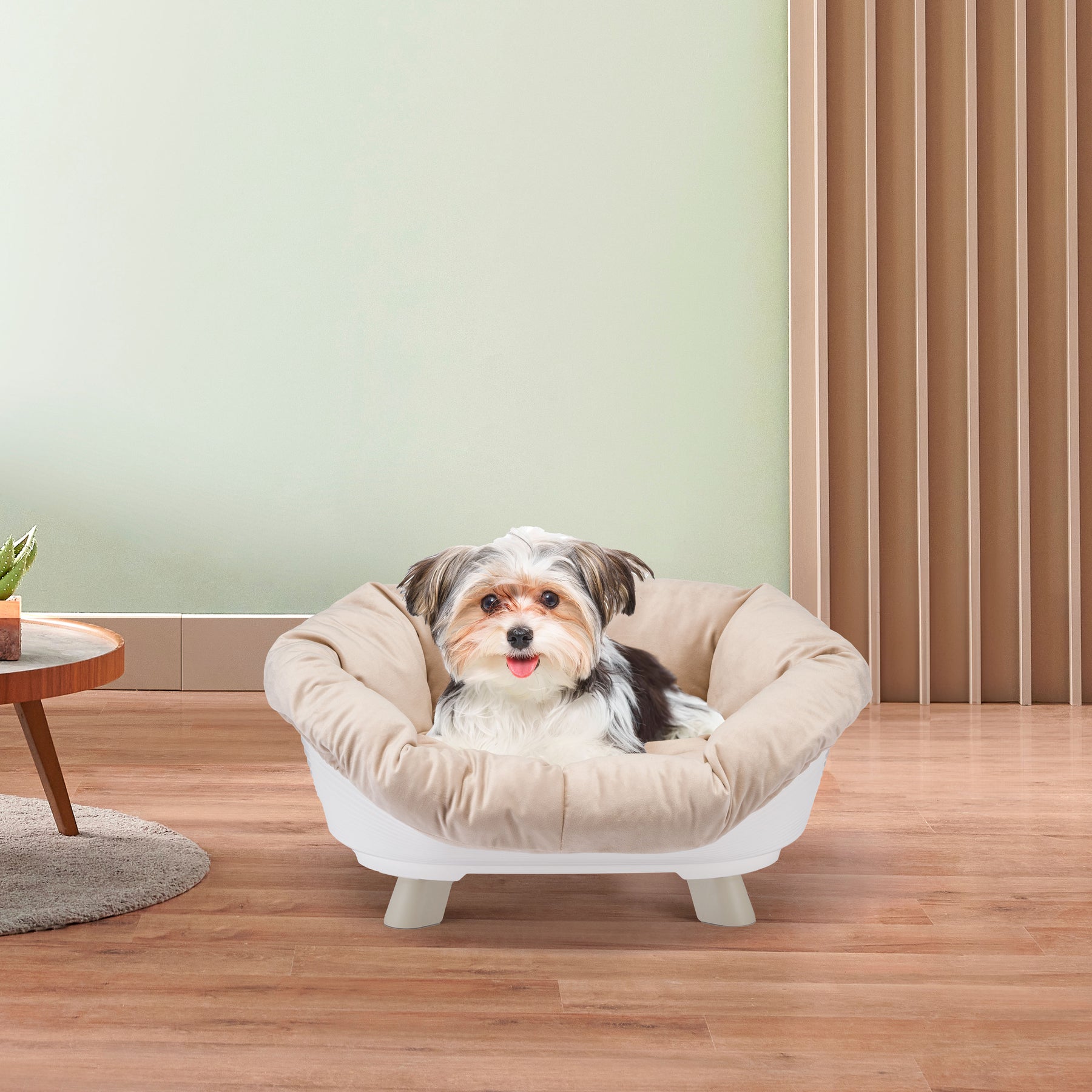Lit surélevé pour chien et chat avec pieds antidérapants amovibles. Doublure en velours doux incluse.