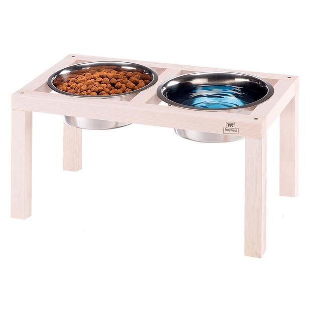 Desco Wood vous permet de fournir à votre animal de compagnie de la nourriture et de l'eau en même temps de manière hygiénique et sûre. Caractérisé par un style essentiel, il est composé d'une robuste base en bois équipée par d'écuelles en acier inoxydable Orion, hygiéniques, résistantes et faciles à manipuler grâce au bord extérieur confortable.