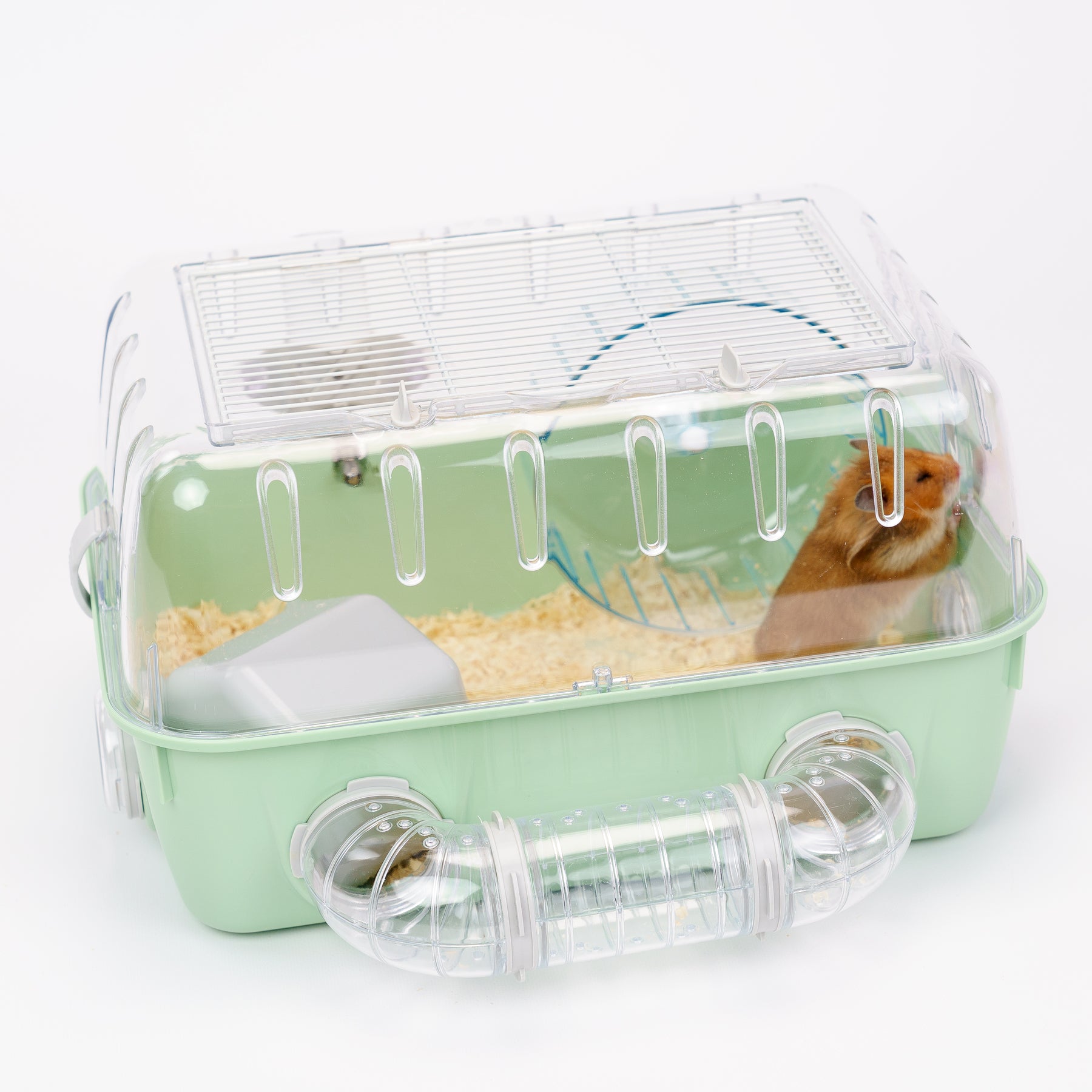 Combi 1 est une petite cage hamsters contenant tout ce dont vous avez besoin pour garder vos peits rongeurs. Elle est conçue en plastique avec un toit transparent et dispose d'une grille métallique sur le dessus et de fentes sur les parois latérales pour garantir une bonne ventilation à l'intérieur. Accessoires livrés avec la cage : une roue, un abreuvoir, une mangeoire, une maisonnete et des tunnels en plastique avec lesquels votre hamster aura beaucoup de plaisir. Comme de nombreuses cages rongeurs faites par Ferplast, elle constitue un habitat modulable sur lequel vous pourrez rajouter d'autres tunnels ou autres accessoires.