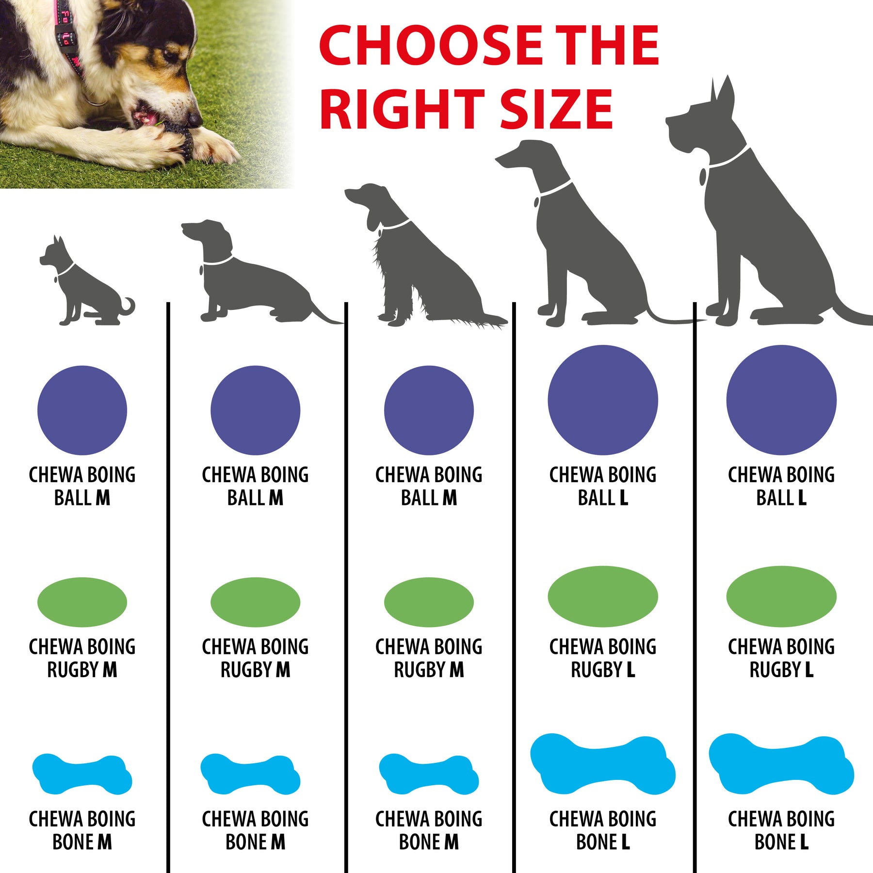 Avec une si large gamme de couleurs et de motifs, les jouets pour chiens Chewa Boing offrent la solution idéale pour chaque besoin. Choisissez le modèle adapté à la taille de votre chien. Surveillez le chien pendant l'utilisation.