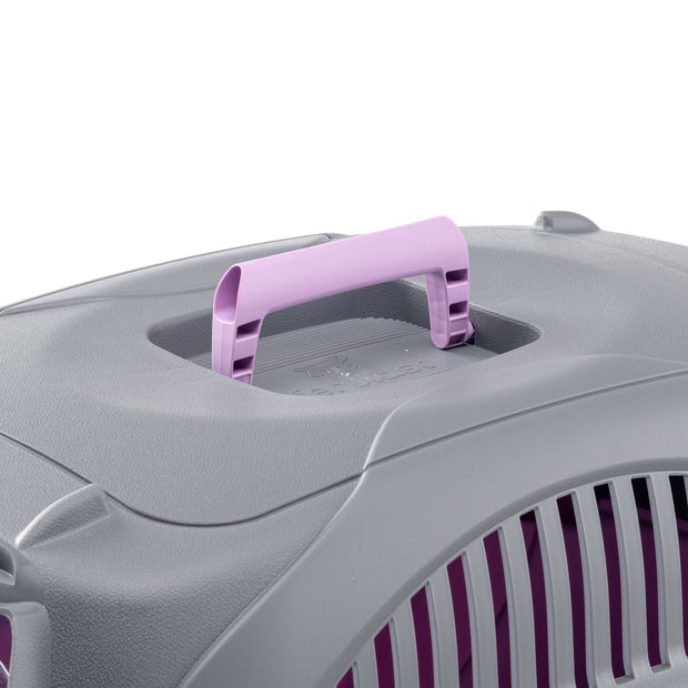 La cage de transport est dotée de crochets, d'une poignée et d'un fond de couleur tendance, ainsi que d'une porte transparente résistante aux chocs. Cette porte est dotée de trous d'aération qui garantissent non seulement une visibilité optimale de votre animal, mais aussi un environnement bien ventilé grâce à des fentes d'aération stratégiquement placées pour optimiser la circulation de l'air.