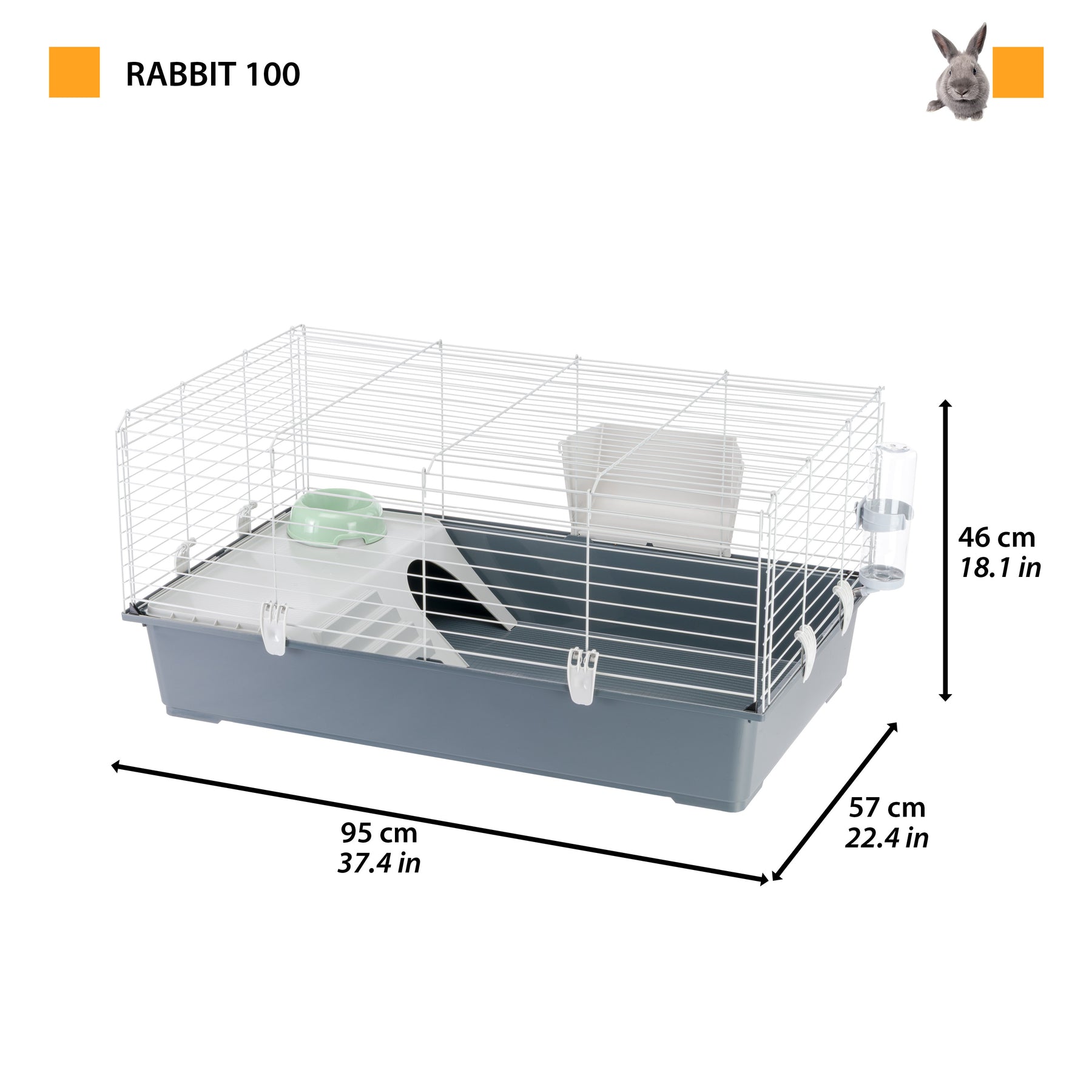 Idéal pour les lapins et cochons d'inde, la cage Rabbit 100 possède un bac en plastique coloré sur lequel repose une grille en métal. Cette grille traitée avec du vernis résistant à la corrosion s'ouvre complètement sur la partie frontale pour un accès facile facilitant les opération de nettoyage. Pour un nettoyage complet, vous pourrez détacher le bac simplement en détanchant les crochets qui se trouvent sur le côté fournis pour un maximum de sécurité.