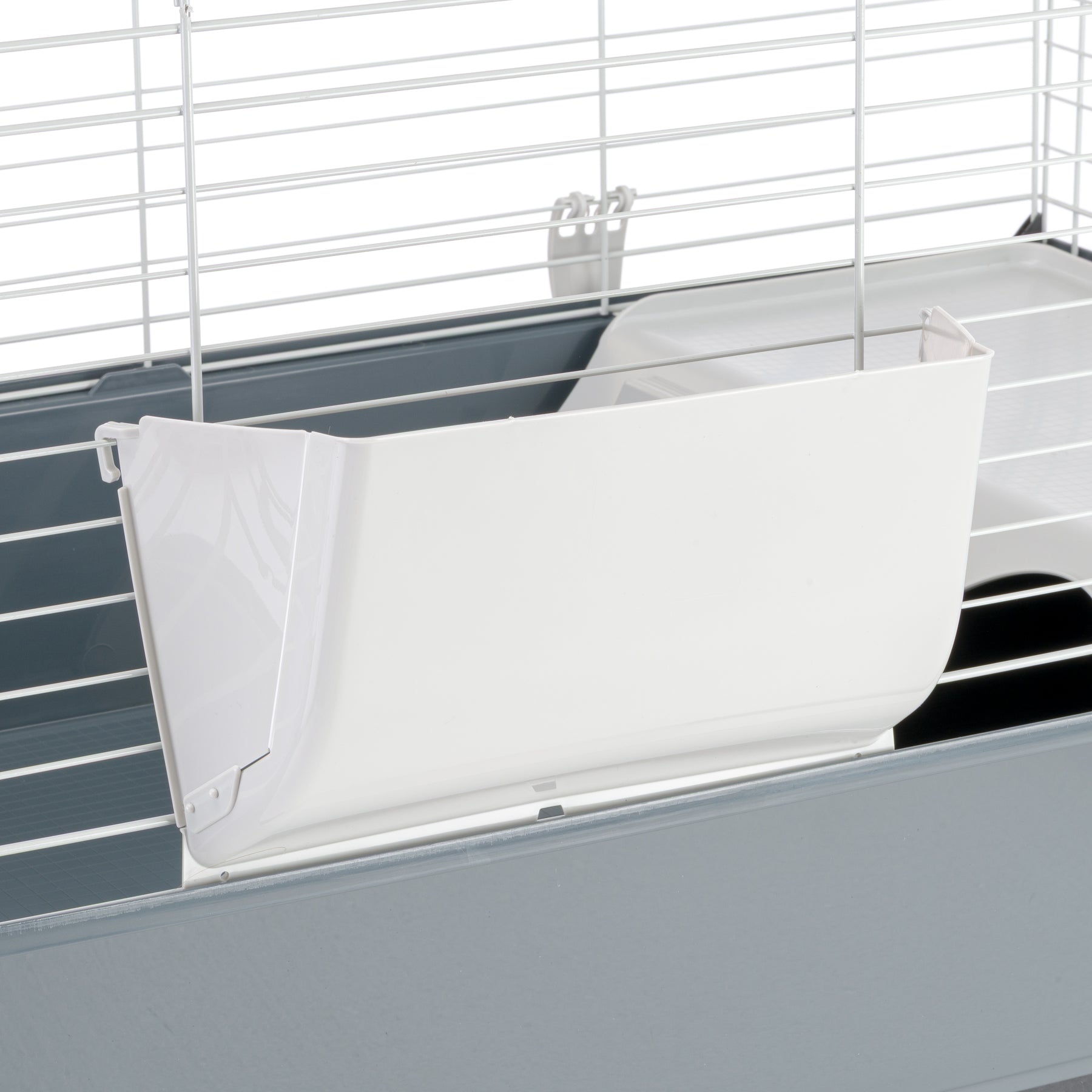 - Grillage et fond en plastique unis latéralement grâce à des crochets latérales, partie frontale pouvant être ouverte complètement