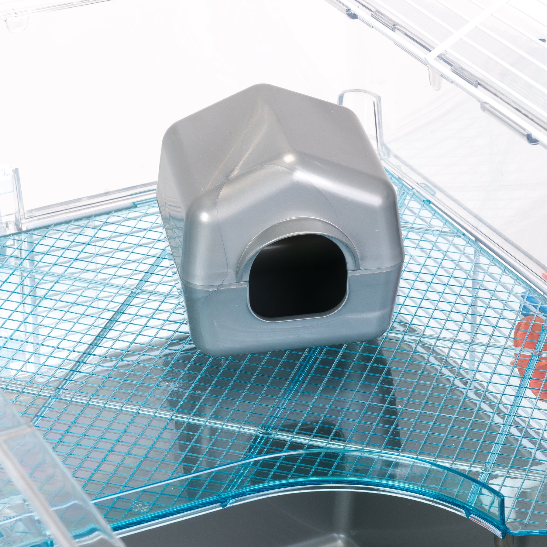Elle se compose de deux parties : un toit et un bac en plastique avec une partie centrale métallique spécialement conçue pour assurer une bonne aération à l'intérieur de l'habitat. La grande ouverture sur le dessus s'ouvre complètement permettant un nettoyage quotidien facile. Le bac est également entièrement démontable pour un nettoyage facile.
