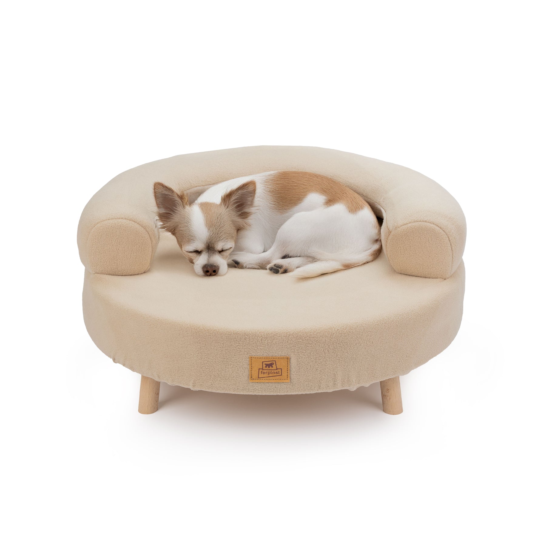 Aki est un fauteuil en bois conçu pour offrir aux chiens et chats de petite taille un refuge doux et enveloppant. La structure en pin nordique certifié FSC™ garantit stabilité et charme naturel, mettant en valeur une forme arrondie et accueillante.