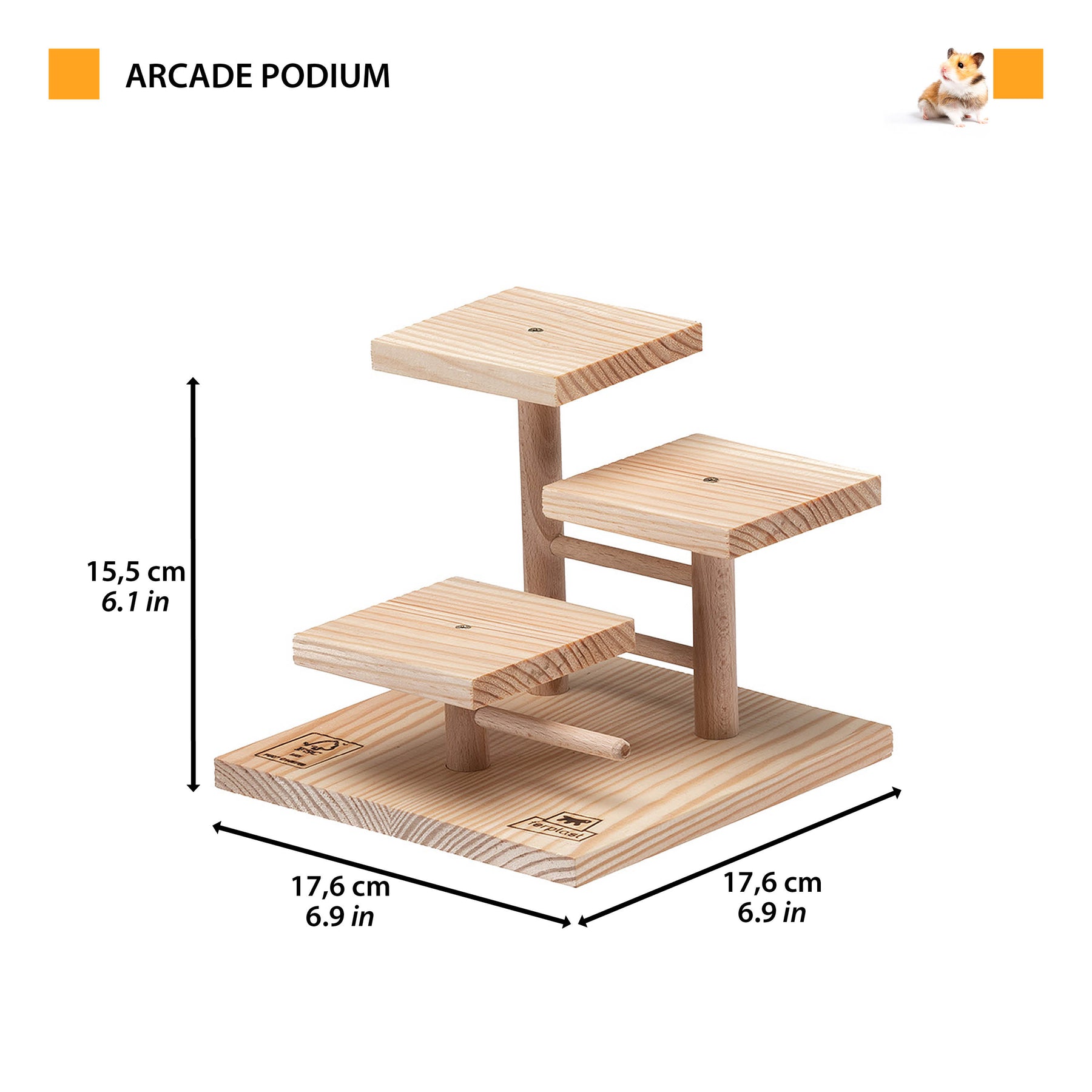 Arcade Podium, adapté aux hamsters et aux souris, est une plate-fome originale en bois à 3 niveaux, utile pour encourager l'exercice et le mouvement. Facile à monter,il est livré en kit à monter.