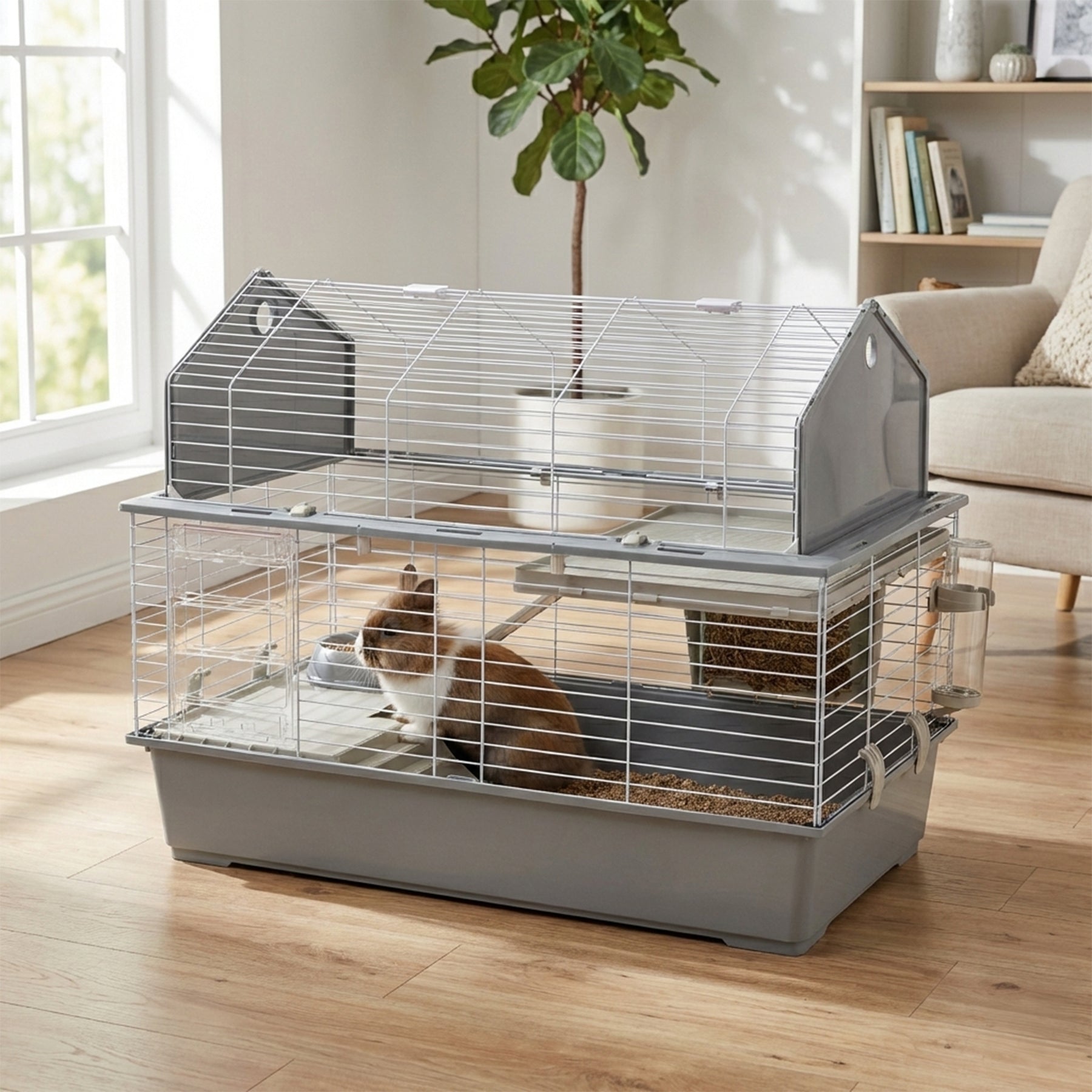 - Accessoires inclus: 1 mangeoire, 1 abreuvoir, 1 écuelle, 1 maisonnette, 1 étagère avec échelle