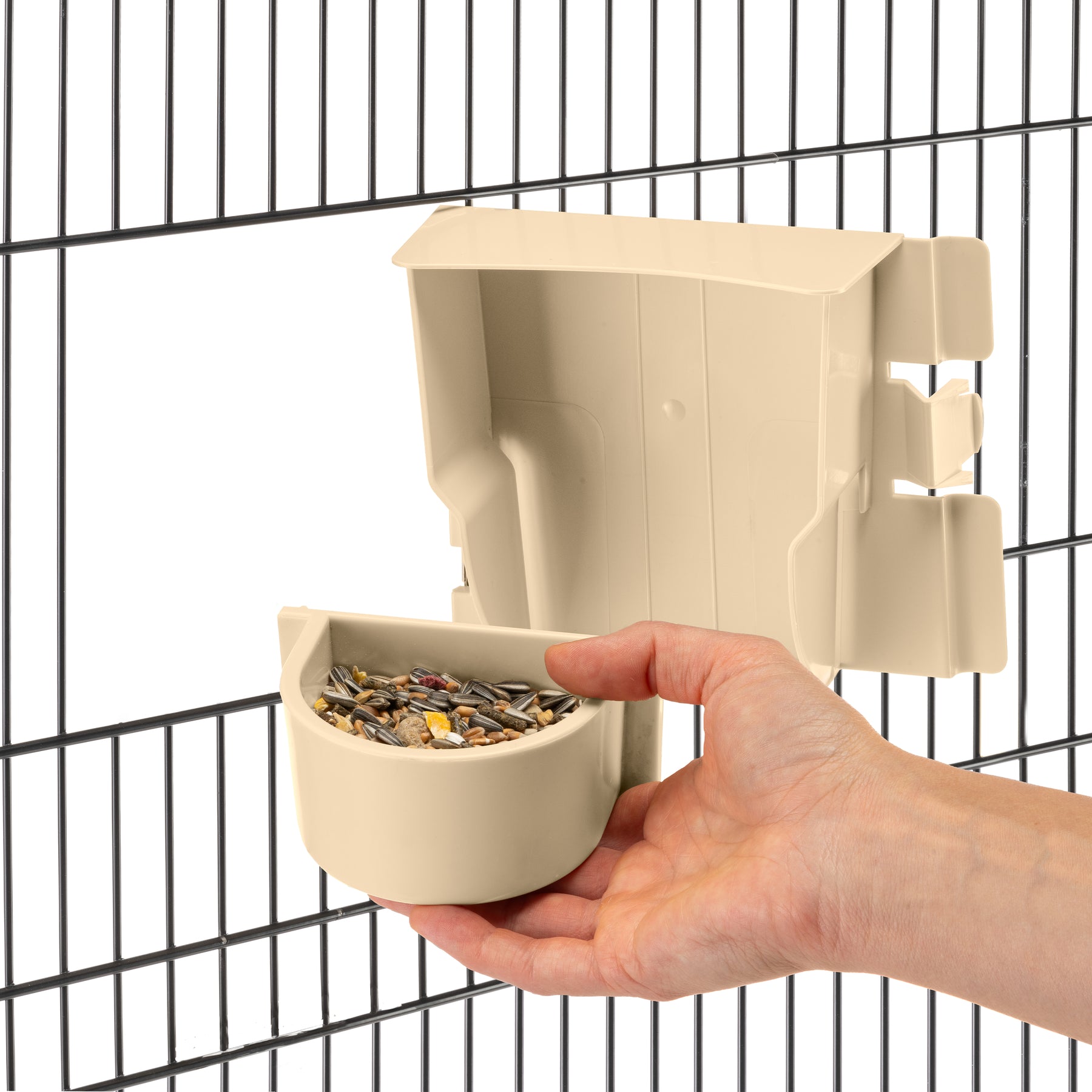 La principale caractéristique de ces mangeoires et qu'elles sont amovibles et peuvent être facilement enlevées de la cage pour être nettoyées facilement. Pour remplir les mangeoires de nourriture, il suffit de les tourner vers l'extérieur. Pour le nettoyage et l'entretien, vous pouvez les enlever de leur boîtier sans risque. En outre, le système de verrouillage sécurité permettra à vos oiseux de ne pas déplacer la mangeoire, évitant également les fuites accidentelles.