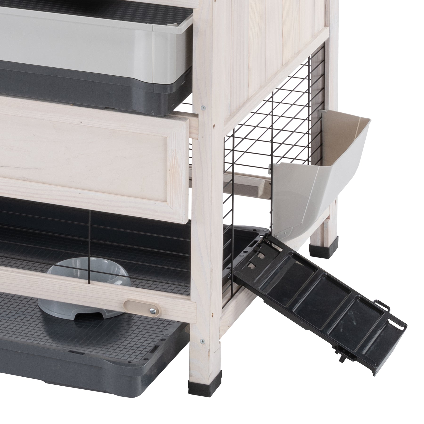Cottage est livré avec une maisonnette intérieure assurant ainsi à votre lapin un endroit paisible et confortable pour se reposer. Ce produit est livré avec 2 échelles, un abreuvoir, un ratelier et une mangeoire en plastique et se nettoie facilement grâce au toit qui peut être ouvert complètement et aux tiroirs en plastique amovibles. Cottage est un produit en bois certifié FSC™ , provenant de forêts gérées de manière éco-responsable, dans le strict respect des normes environnementales, sociales et économiques et d'autres sources contrôlées.