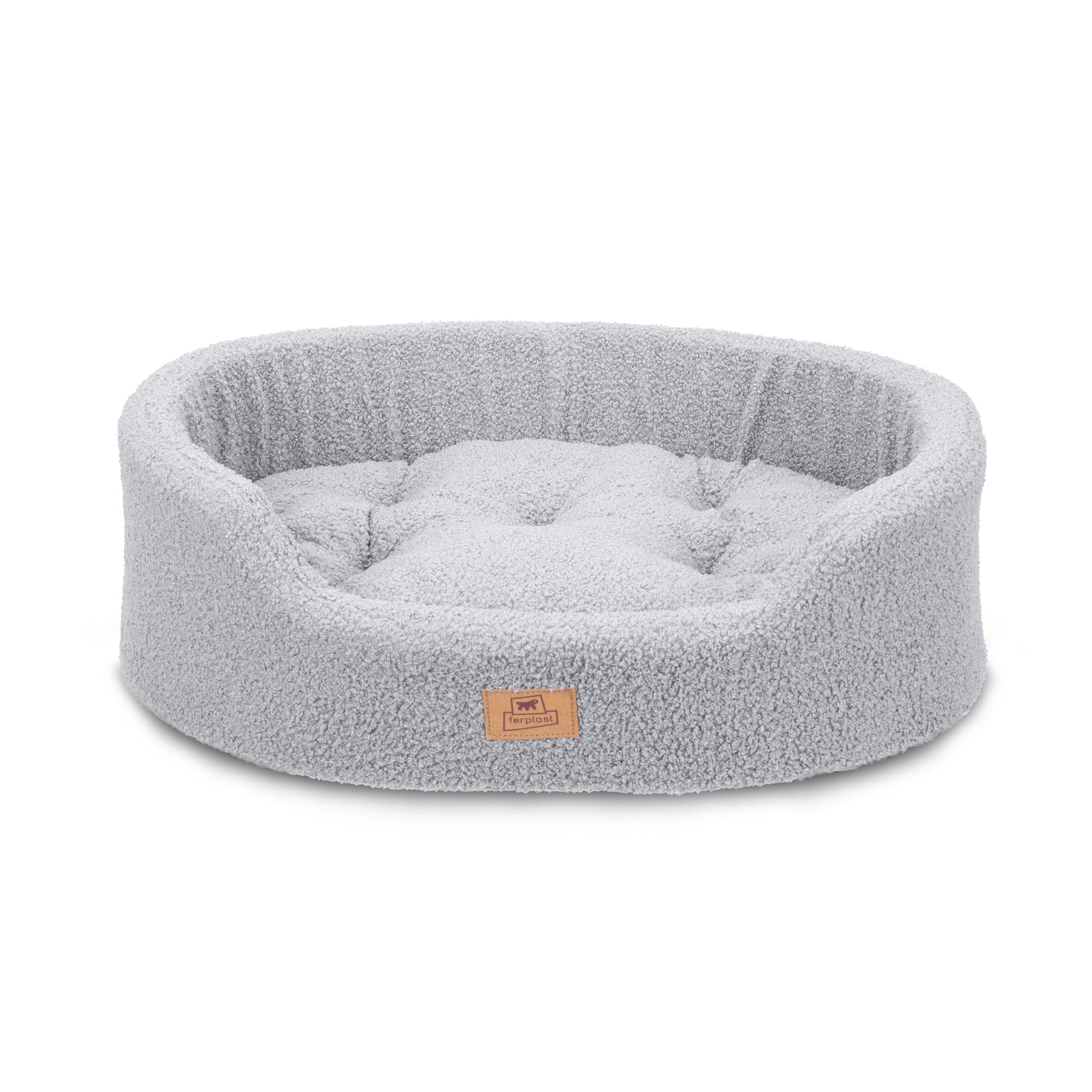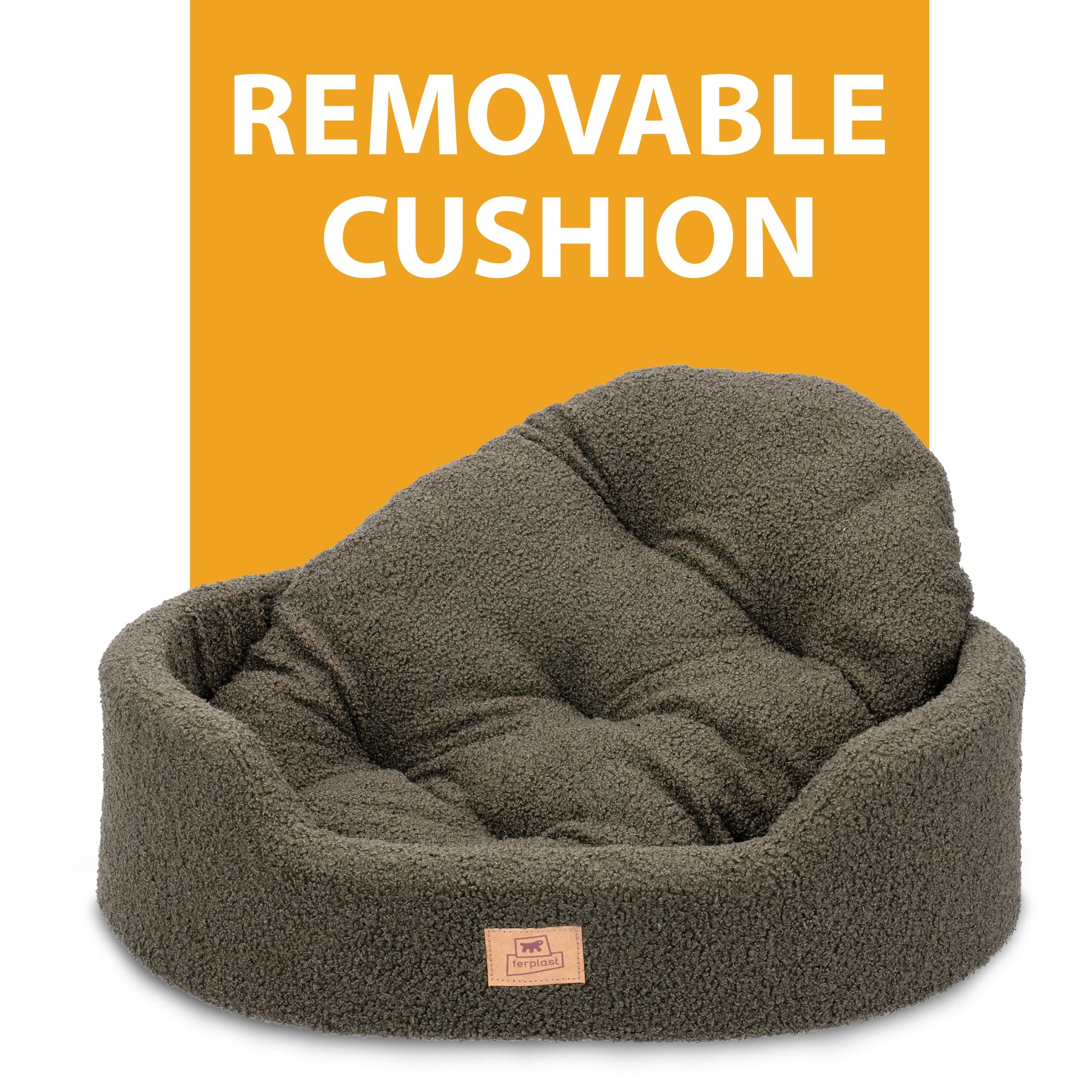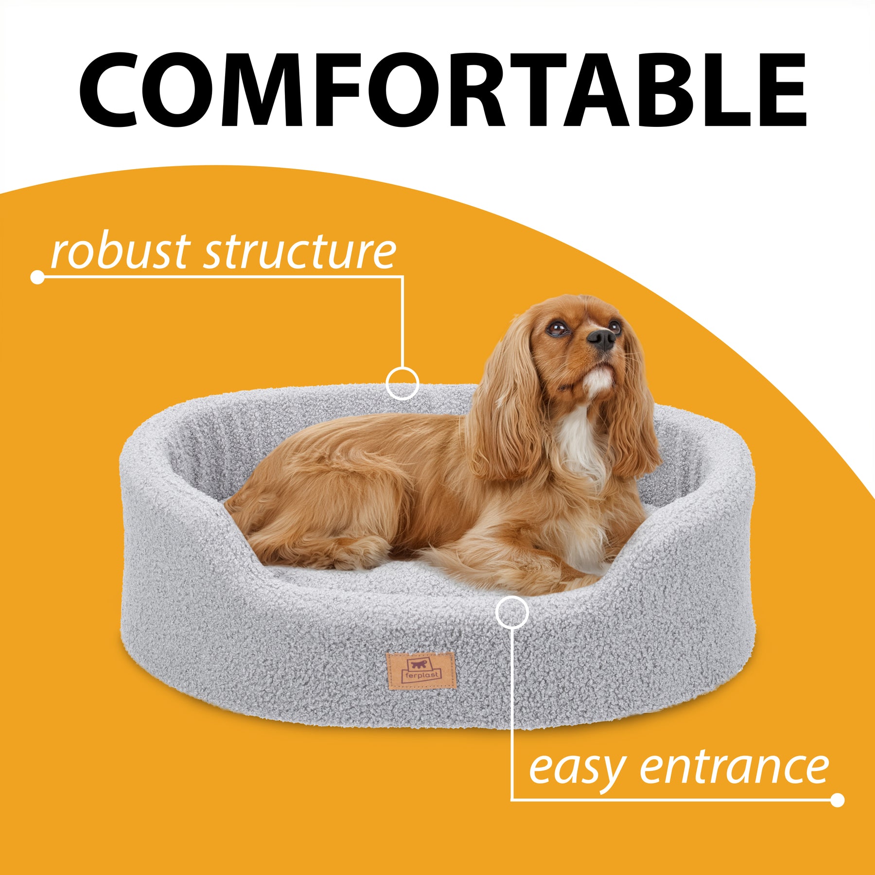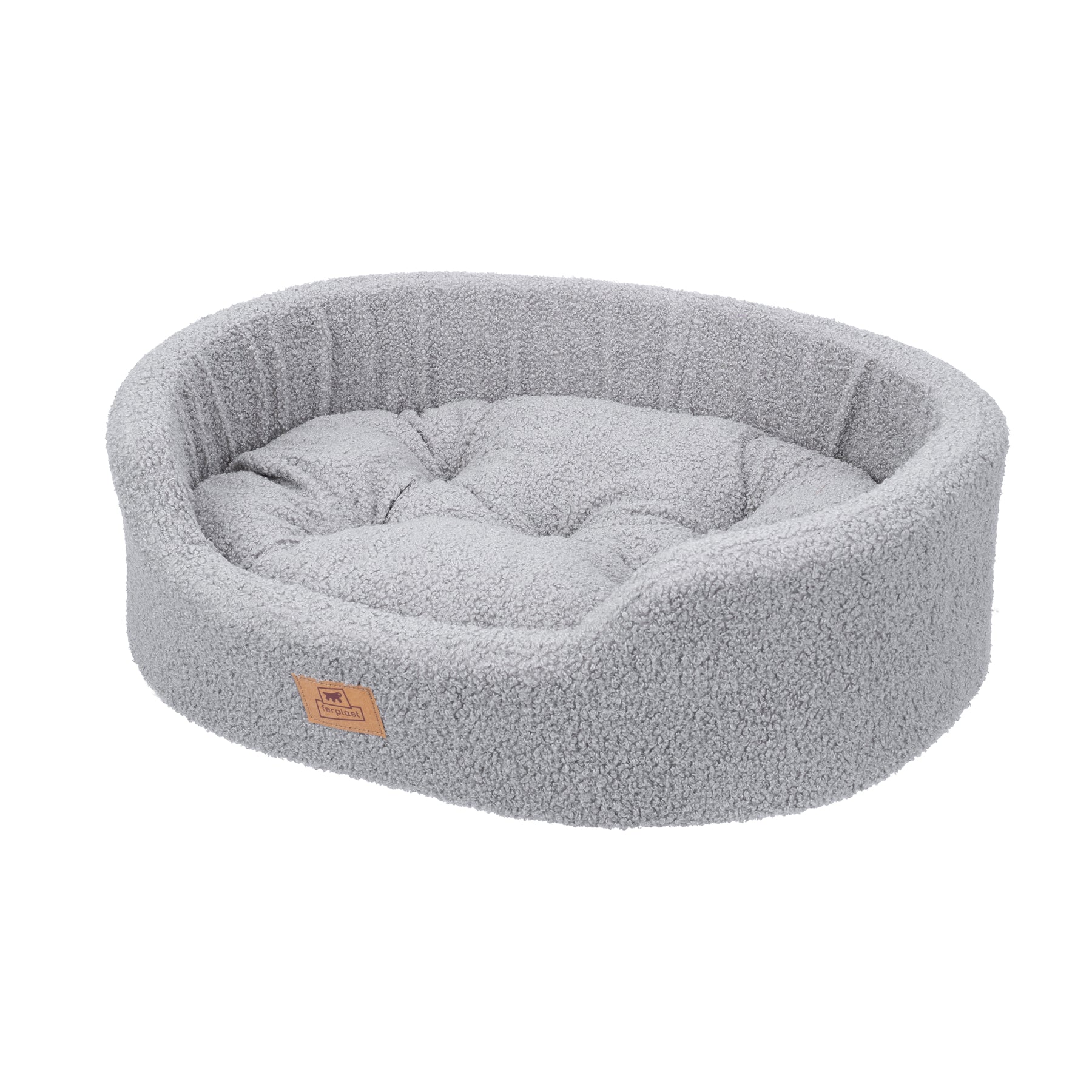 La corbeille pour chiens et chats Dandy Bouclé allie style et confort dans un couchage élégant et accueillant. Il présente des rebords latéraux hauts avec un rembourrage moelleux et un coussin intérieur amovible, pour offrir à votre compagnon à quatre pattes soutien, protection et bien-être durant son repos. À l’avant, l’entrée abaissée facilite l’accès, même pour les animaux plus petits ou âgés.