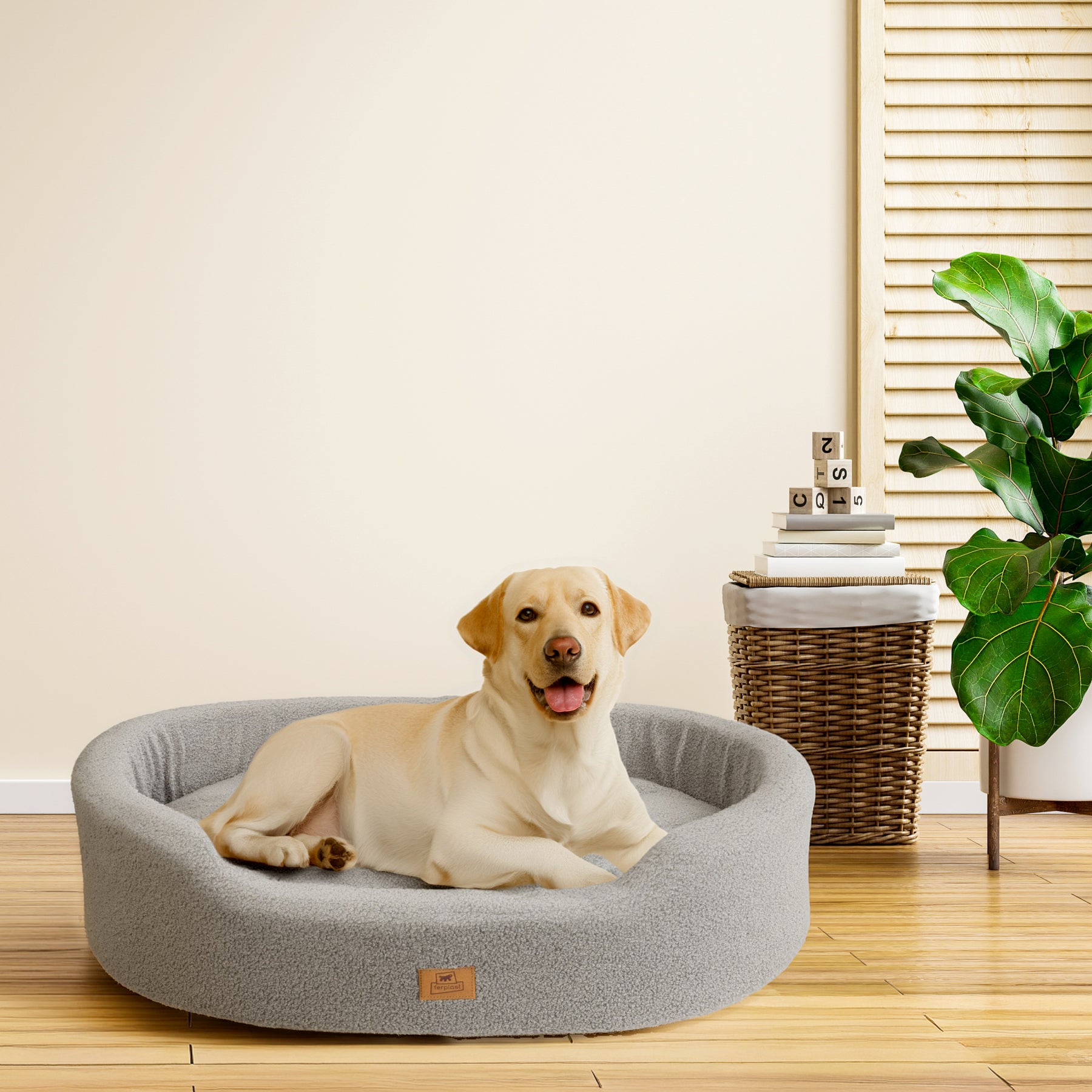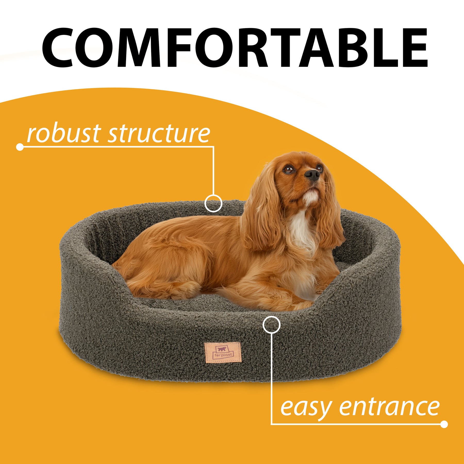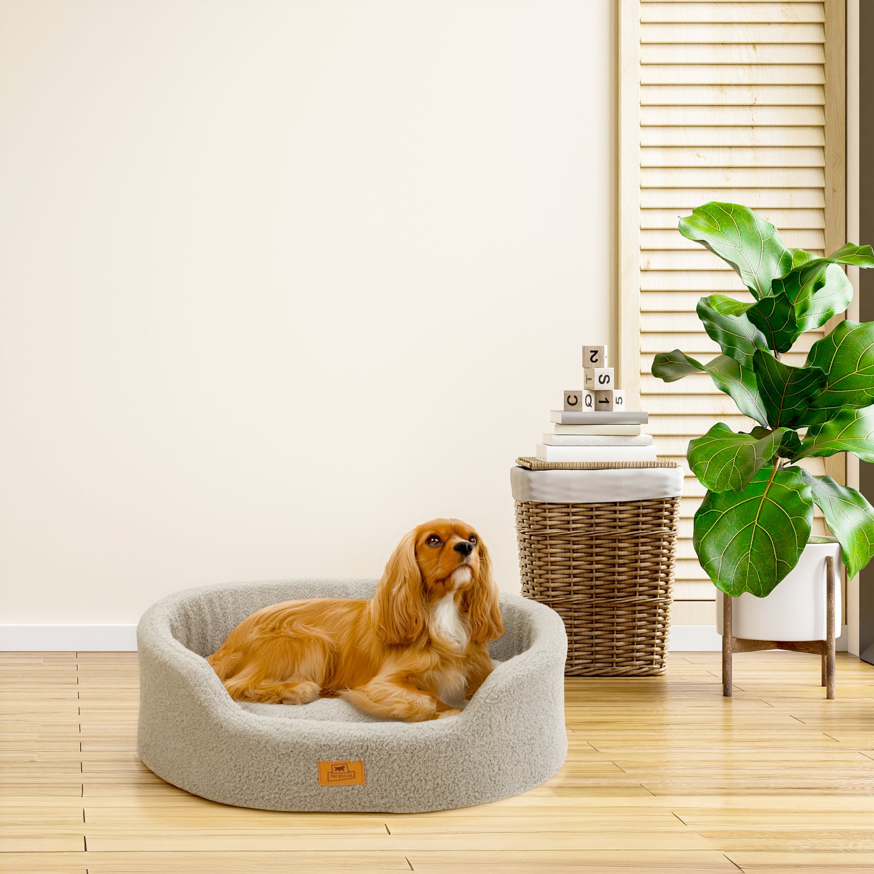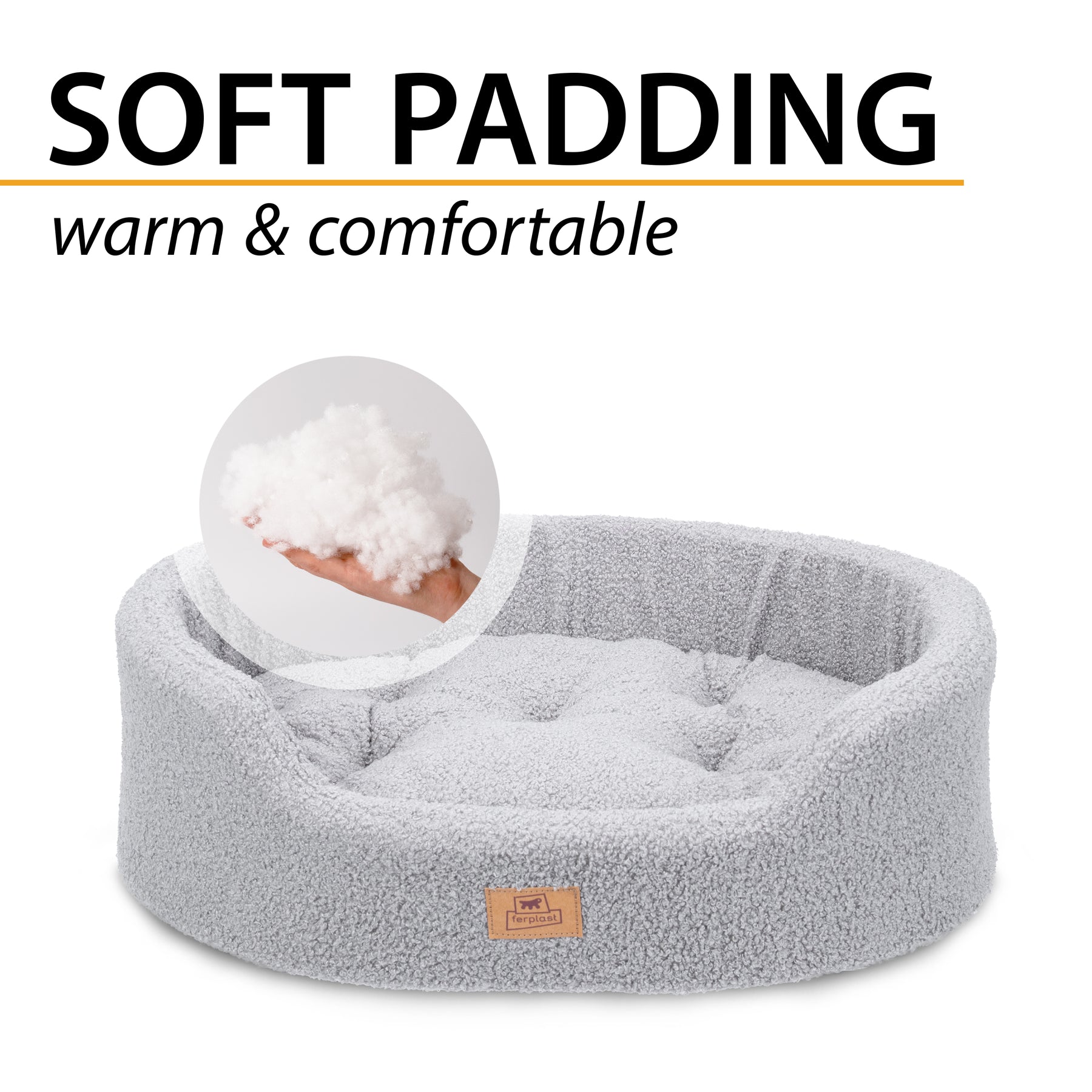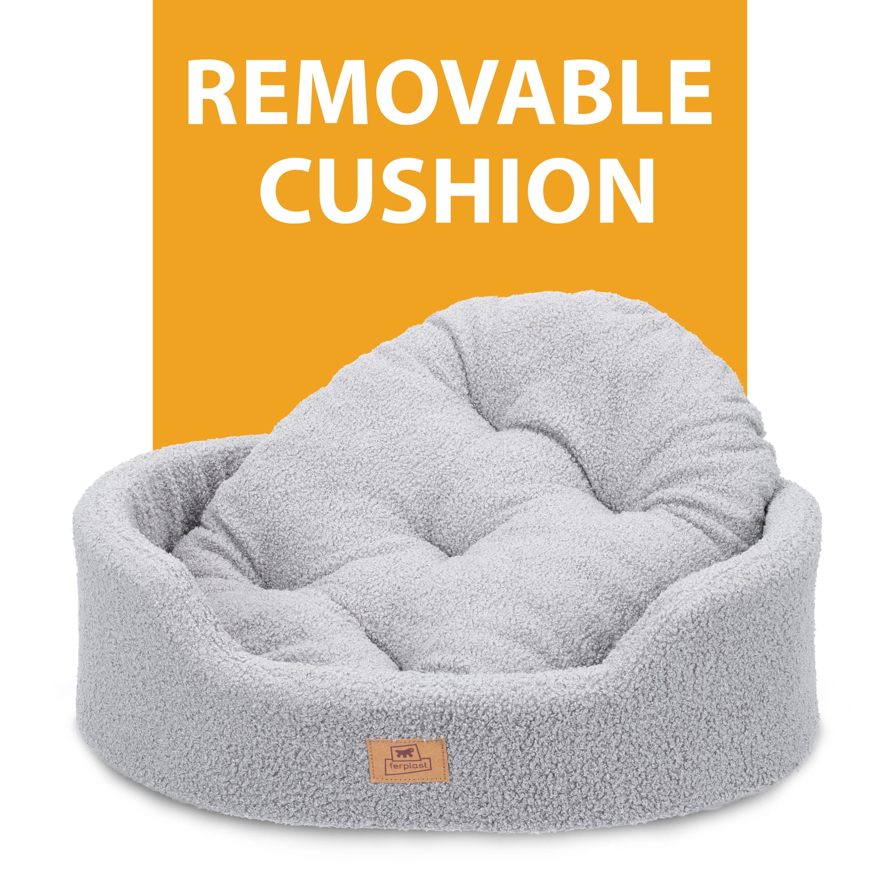 La corbeille pour chiens et chats Dandy Bouclé allie style et confort dans un couchage élégant et accueillant. Il présente des rebords latéraux hauts avec un rembourrage moelleux et un coussin intérieur amovible, pour offrir à votre compagnon à quatre pattes soutien, protection et bien-être durant son repos. À l’avant, l’entrée abaissée facilite l’accès, même pour les animaux plus petits ou âgés.