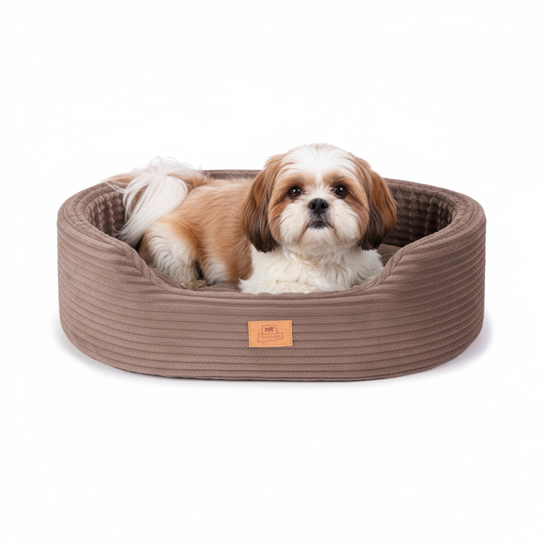 Panier divan pour chiens et chats en velours côtelé Corduroy avec coussin amovible. Couchage d’intérieur confortable et lavable en machine