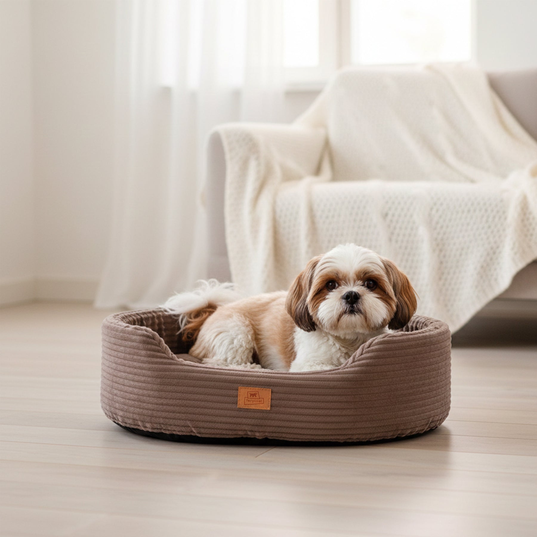 Dandy Corduroy est un panier pour chiens et chats de style divan, conçu pour offrir un espace de repos confortable, protecteur et soigné dans les moindres détails. Grâce à sa structure rembourrée et à ses bords surélevés, il peut également être utilisé comme lit d’intérieur pour chiens et chats, idéal pour le repos quotidien.