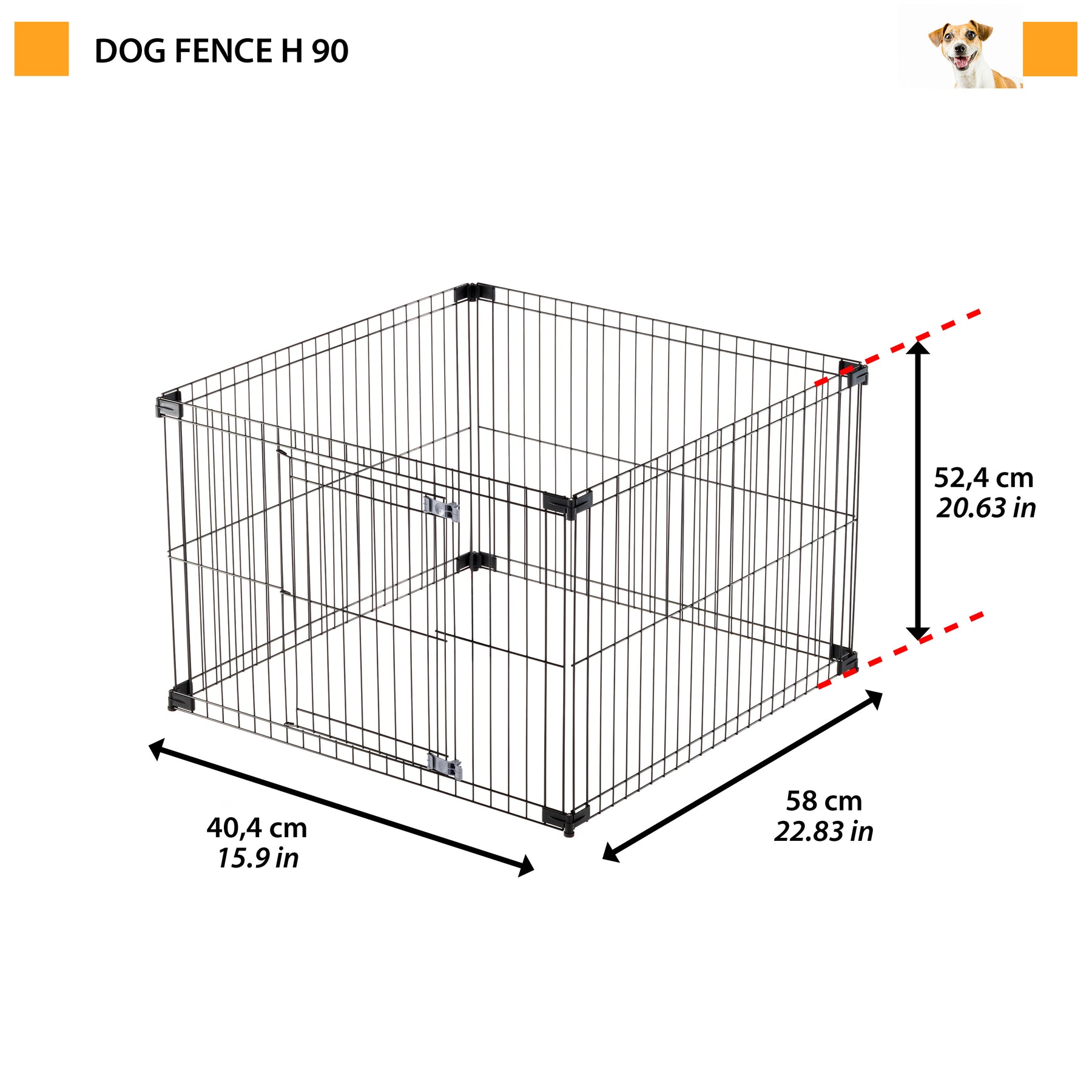 DOG FENCE est un enclos pour chien modulable conçu pour offrir un espace sûr, protégé et parfaitement adaptable, tant à l’intérieur qu’à l’extérieur. Fabriqué en métal plastifié résistant, il garantit stabilité, durabilité et une apparence discrète qui s’intègre facilement dans un salon, une terrasse ou un jardin. La gamme comprend trois modèles répondant à différents besoins : la version à 4 panneaux avec une hauteur de 90 cm, idéale lorsque l’on recherche une barrière plus élevée ; la version à 6 panneaux de 60 cm ; et enfin le modèle à 8 panneaux, également de 60 cm, parfait pour créer une zone plus vaste dédiée au jeu ou au repos du chien.