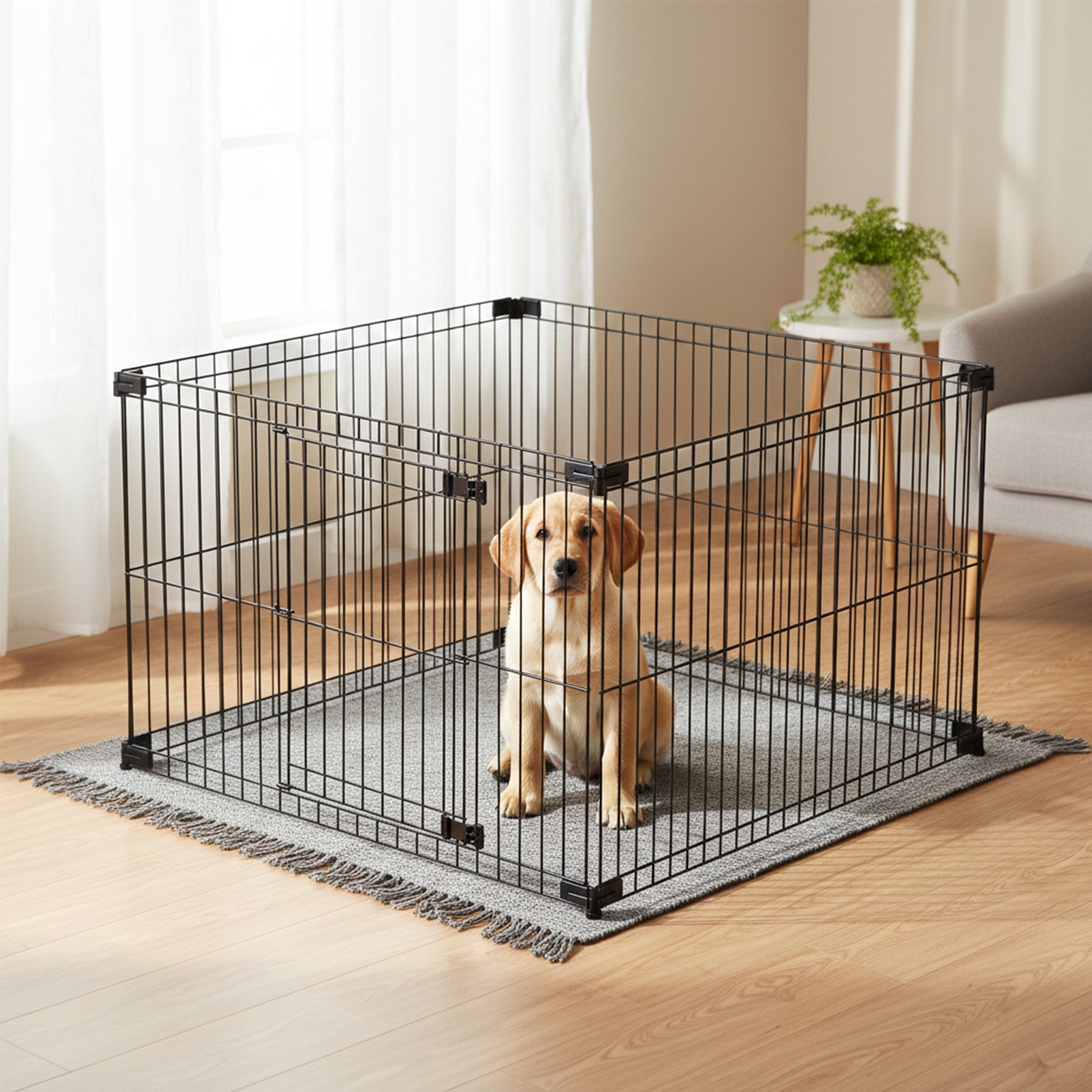 Pour agrandir l’aire de l’enclos, il est possible d’ajouter des panneaux DOG FENCE EXTENSION vendus séparément. Pour une installation en extérieur, des piquets de fixation sont disponibles en option afin de stabiliser l’ensemble sur sol meuble. Convient aux chiots comme aux chiens adultes, DOG FENCE est idéal pour créer des zones sécurisées, organiser des espaces d’entraînement ou installer des espaces temporaires : un enclos robuste, flexible et entièrement personnalisable, pensé pour le bien-être quotidien de votre compagnon.