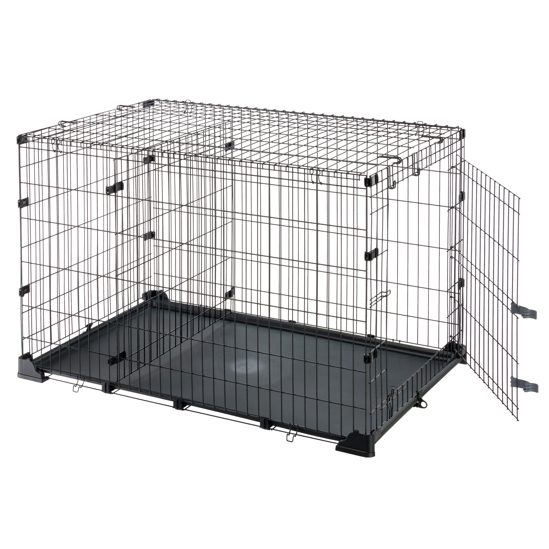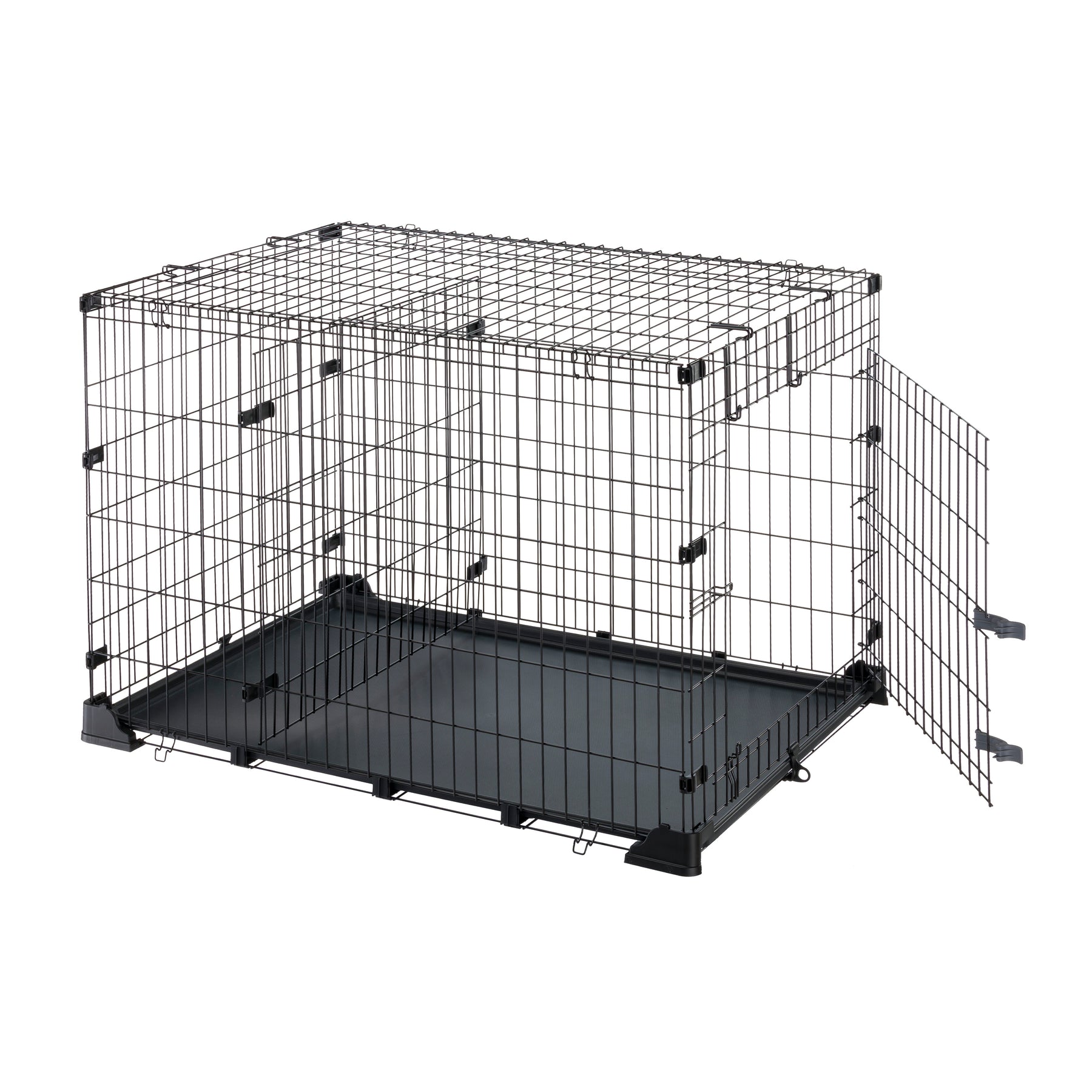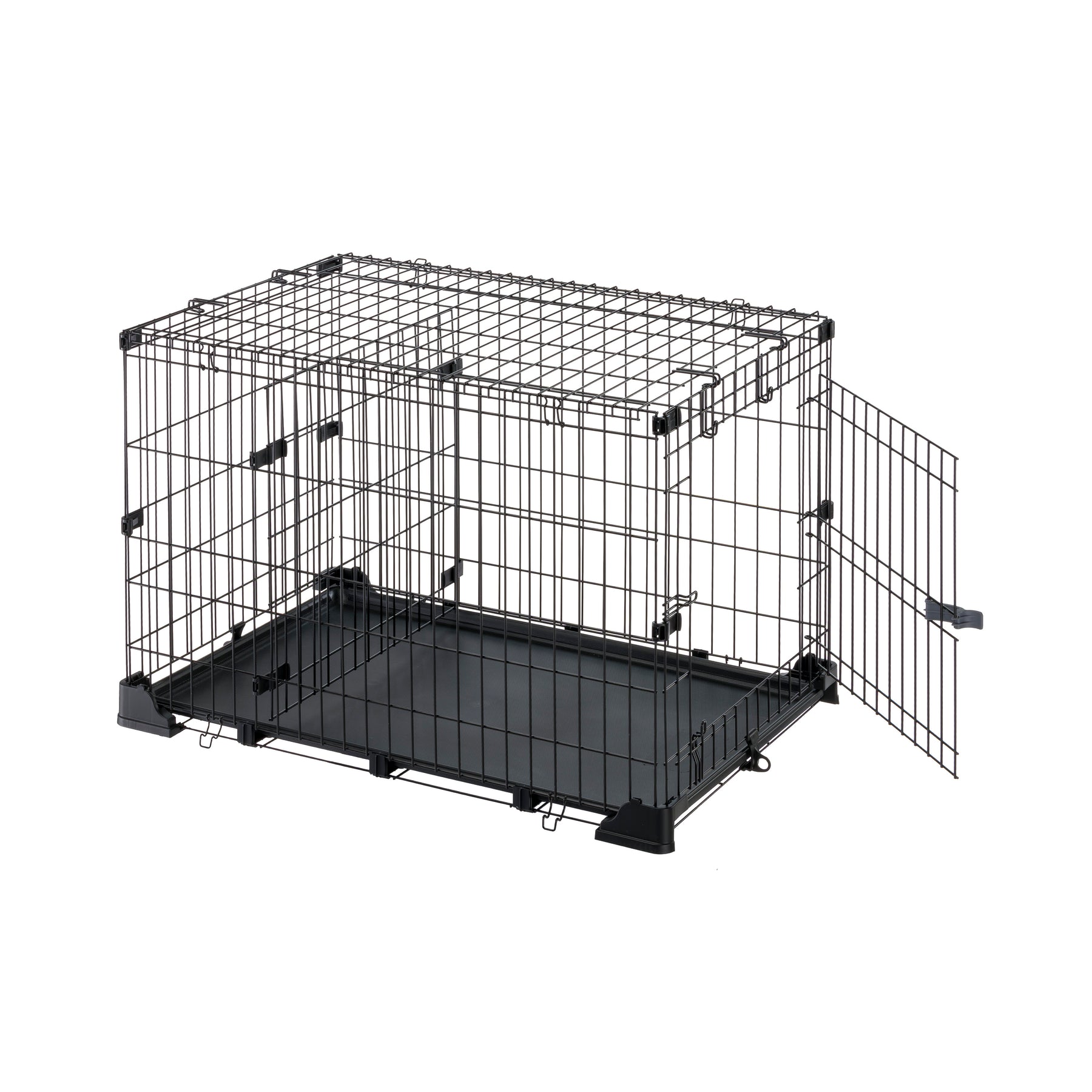 Cage pour chien pliable en métal, silencieuse et robuste. Litière-cage avec séparateur, plateau étanche et fermeture sécurisée.