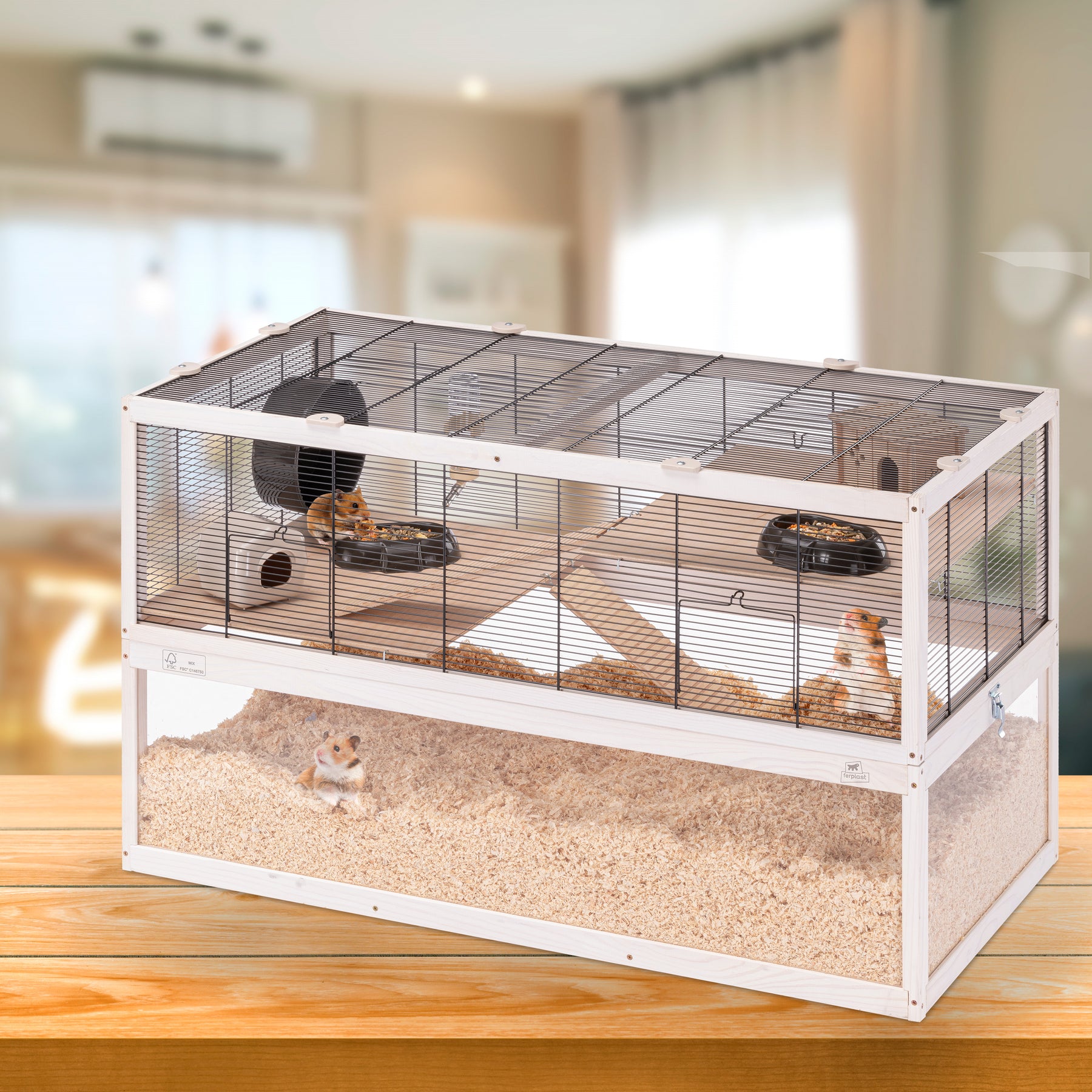 La base en plastique transparent de chaque cage vous permet de voir clairement votre animal, ce qui facilite l'observation du jeu et de l'exploration de votre rongeur.