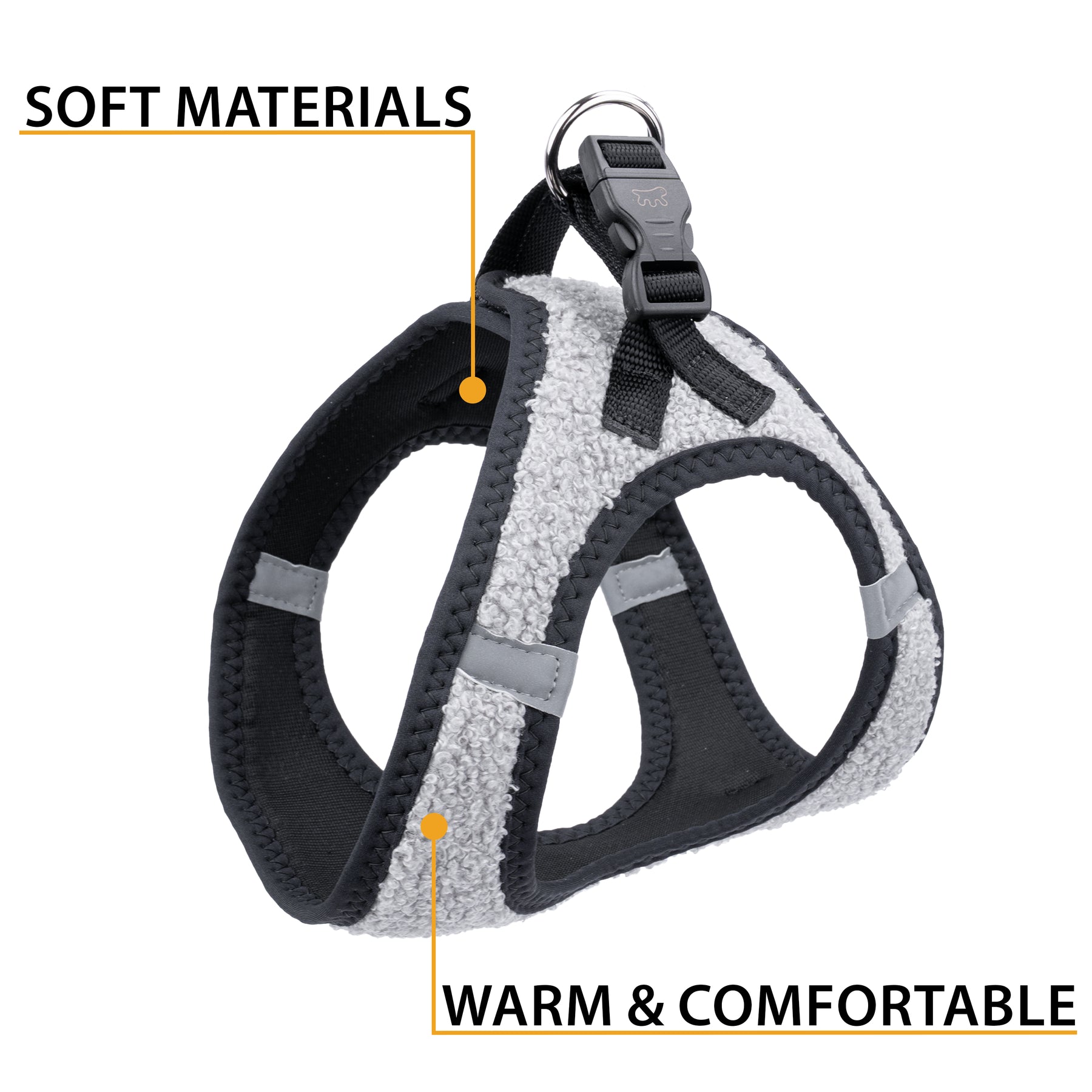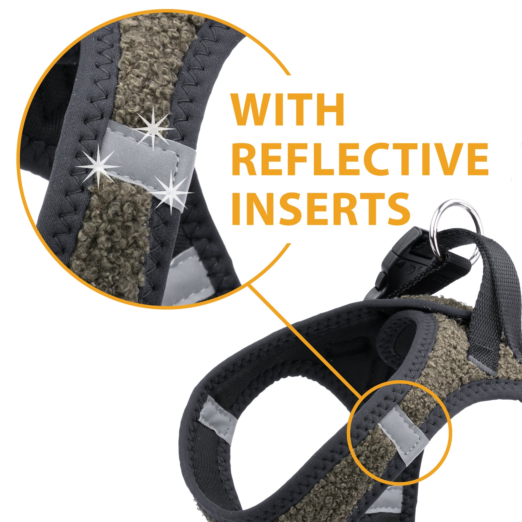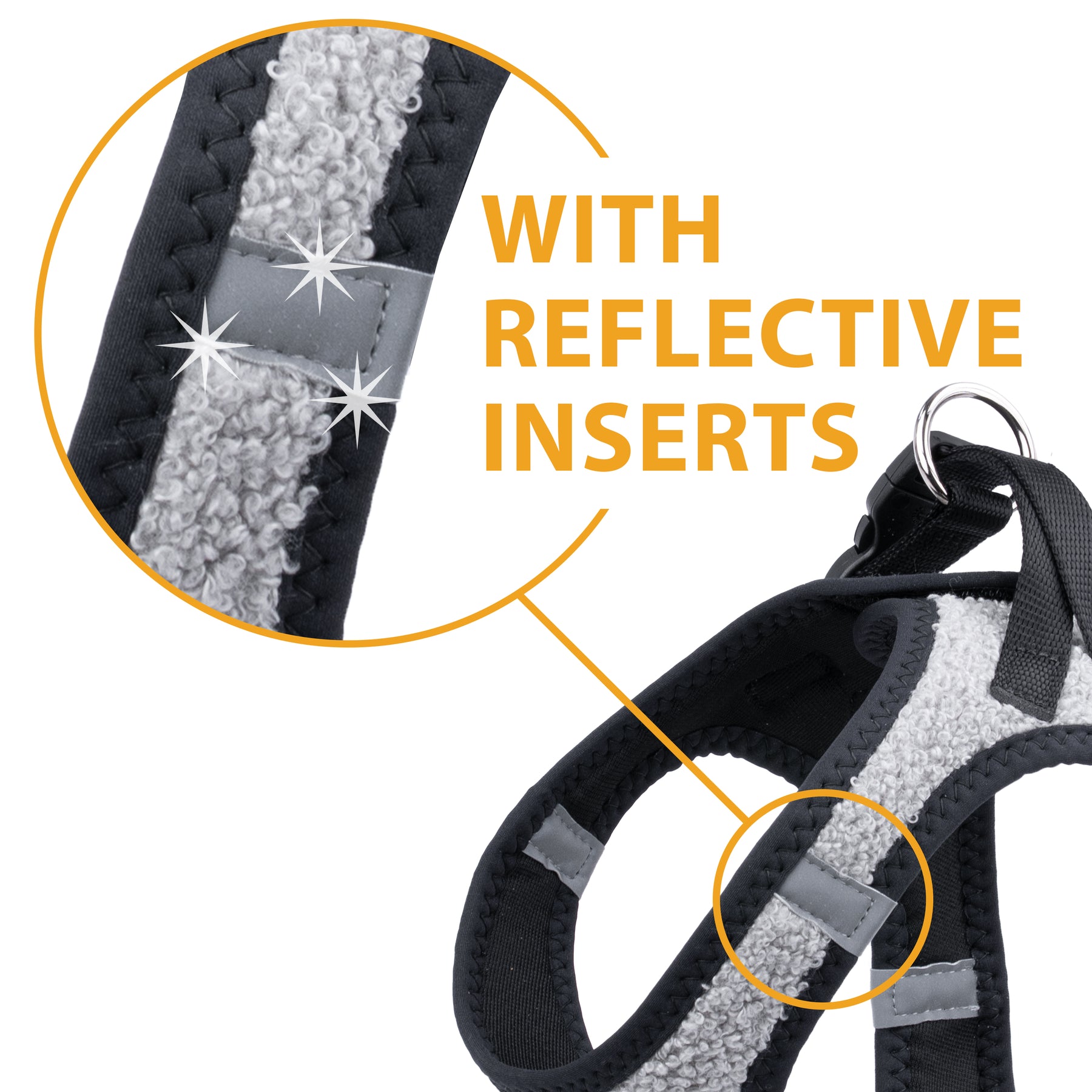 Conçu pour la saison froide, ce harnais pour chiens est équipé d’inserts réfléchissants pour améliorer la visibilité en cas de faible luminosité ou lors des sorties nocturnes, garantissant une sécurité accrue.