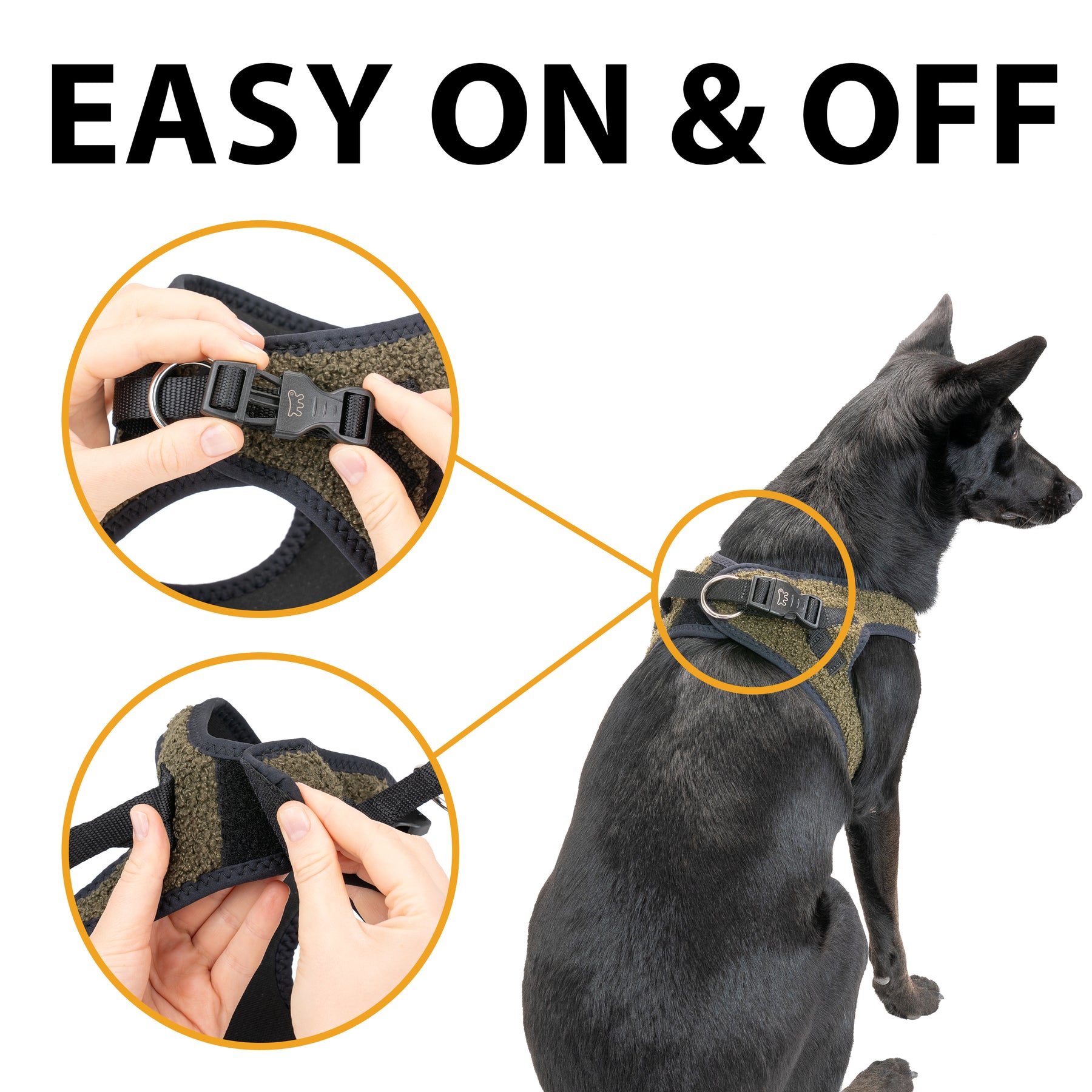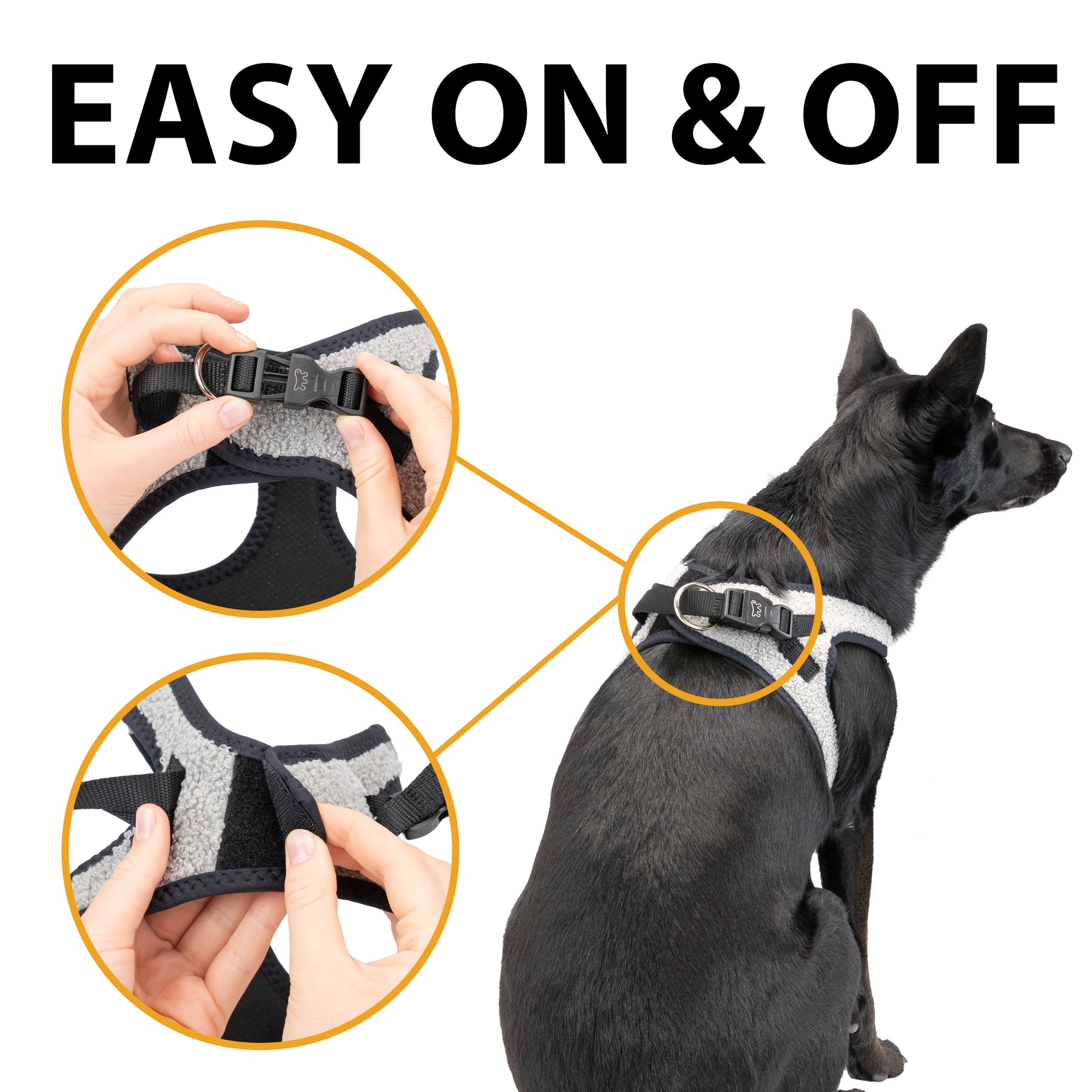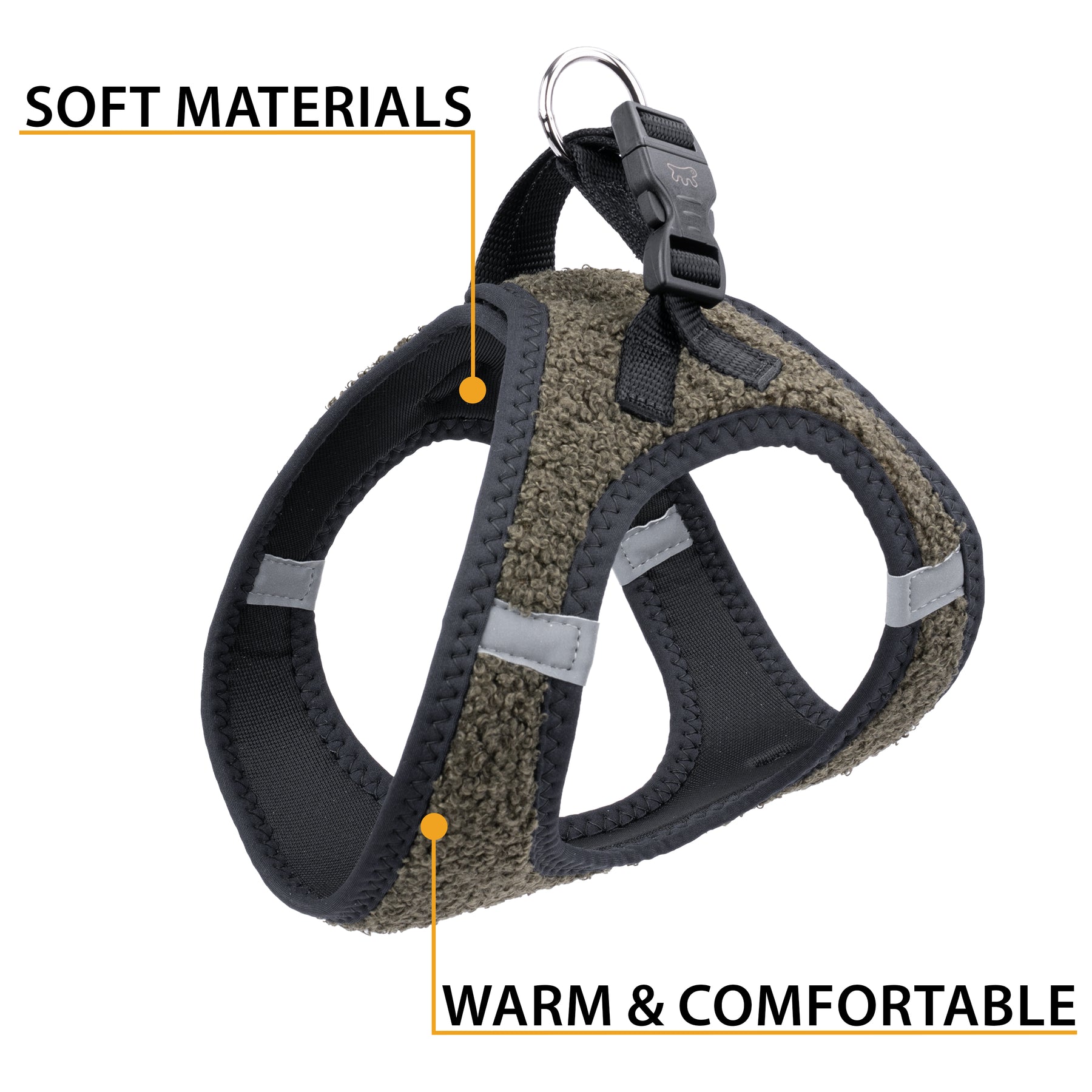 Conçu pour la saison froide, ce harnais pour chiens est équipé d’inserts réfléchissants pour améliorer la visibilité en cas de faible luminosité ou lors des sorties nocturnes, garantissant une sécurité accrue.