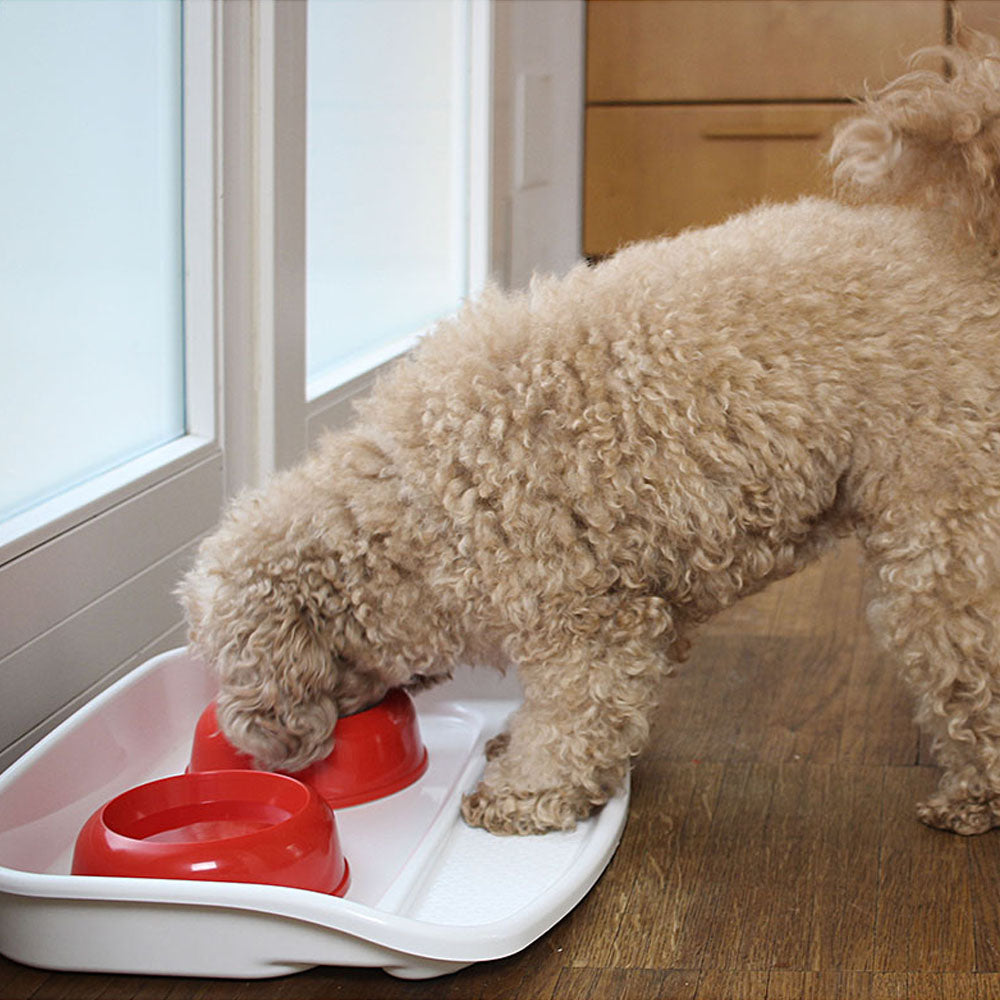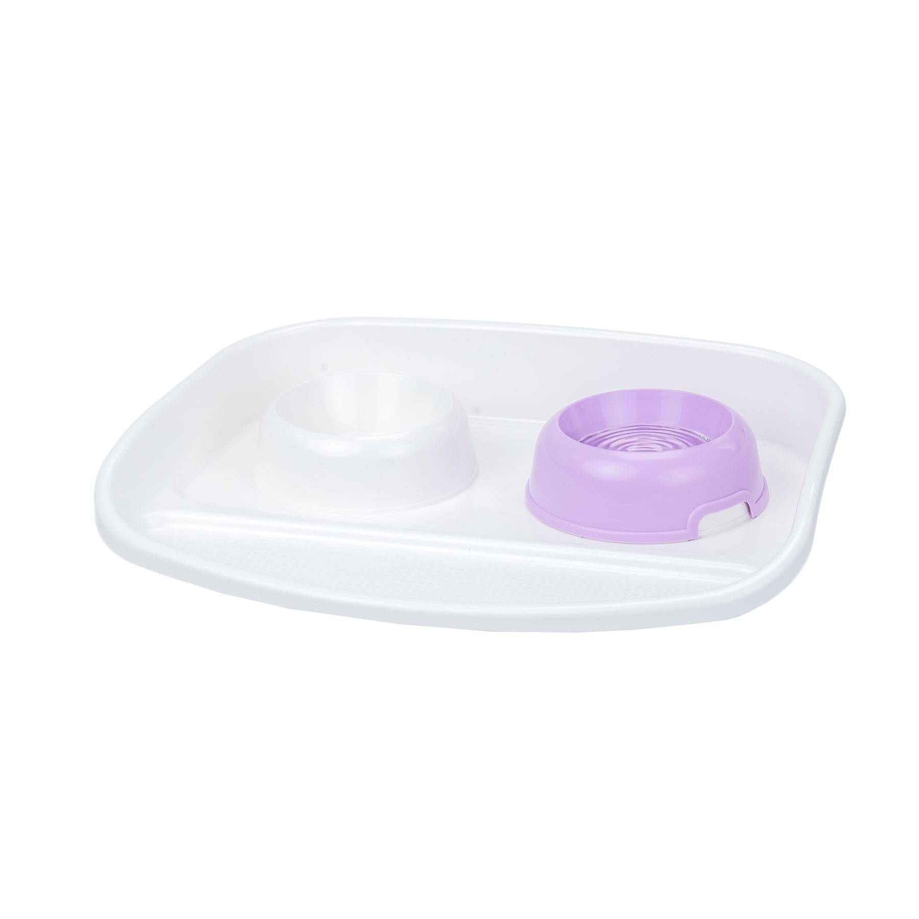 Lindo est un plateau de propreté livré avec écuelles pour chiens et chats en plastique, il est idéal pour garder le sol propre. Ce plateau permettra à votre ami à quatre pattes de placer ses pattes et grâce à la bordure en relief sur les côtés, il n'y aura pas de débordement de nourriture ou d'eau. Il contient deux écuelles en plastique (Party 4, qui contient 0,3 litres). Il est très pratique, car il vous permet de fournir de la nourriture sèche ou humide et de l'eau en même temps.