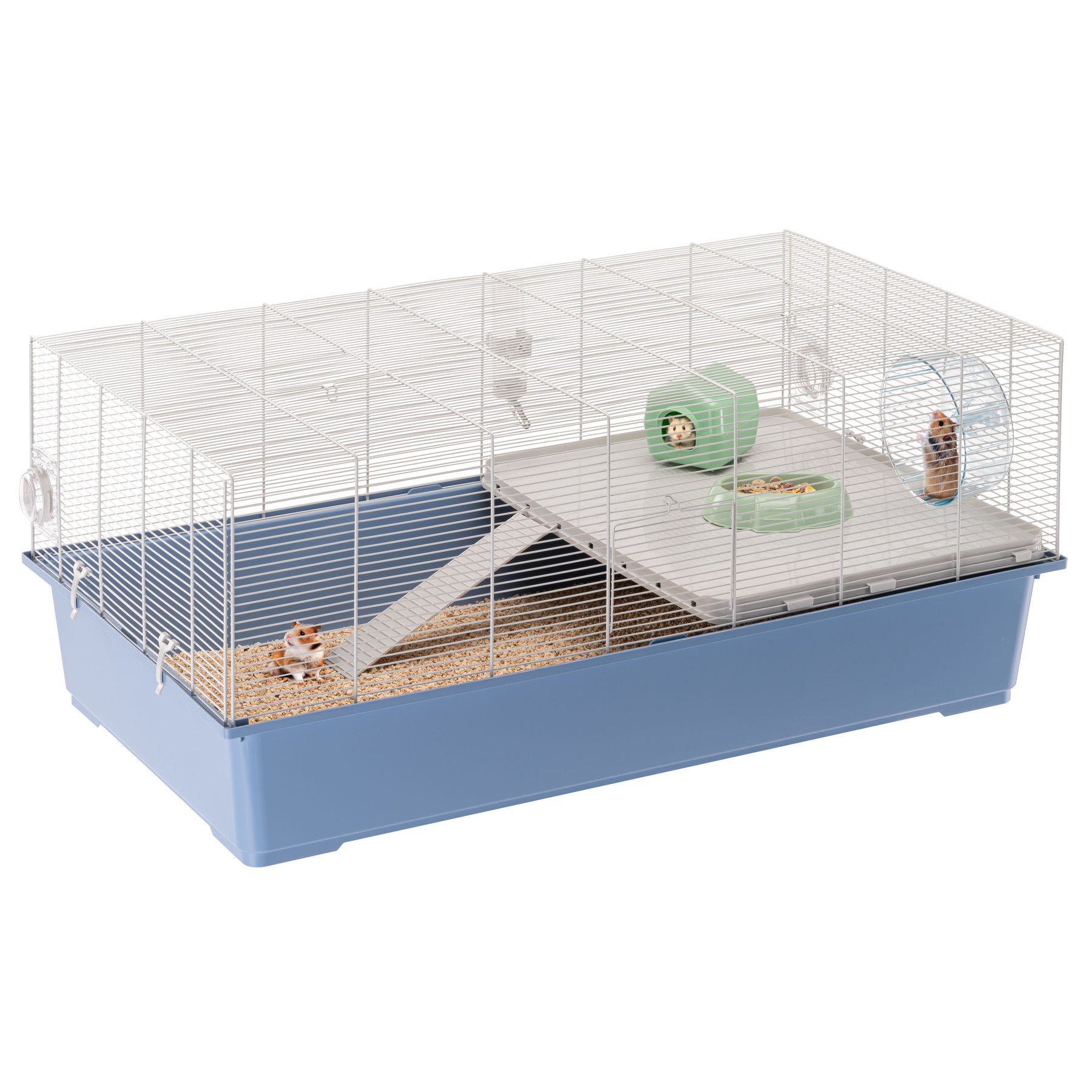 - Accessoires inclus : 1 mangeoire, 1 abreuvoir, 1 roue, 1 maison de repos, 1 étagère, 1 échelle