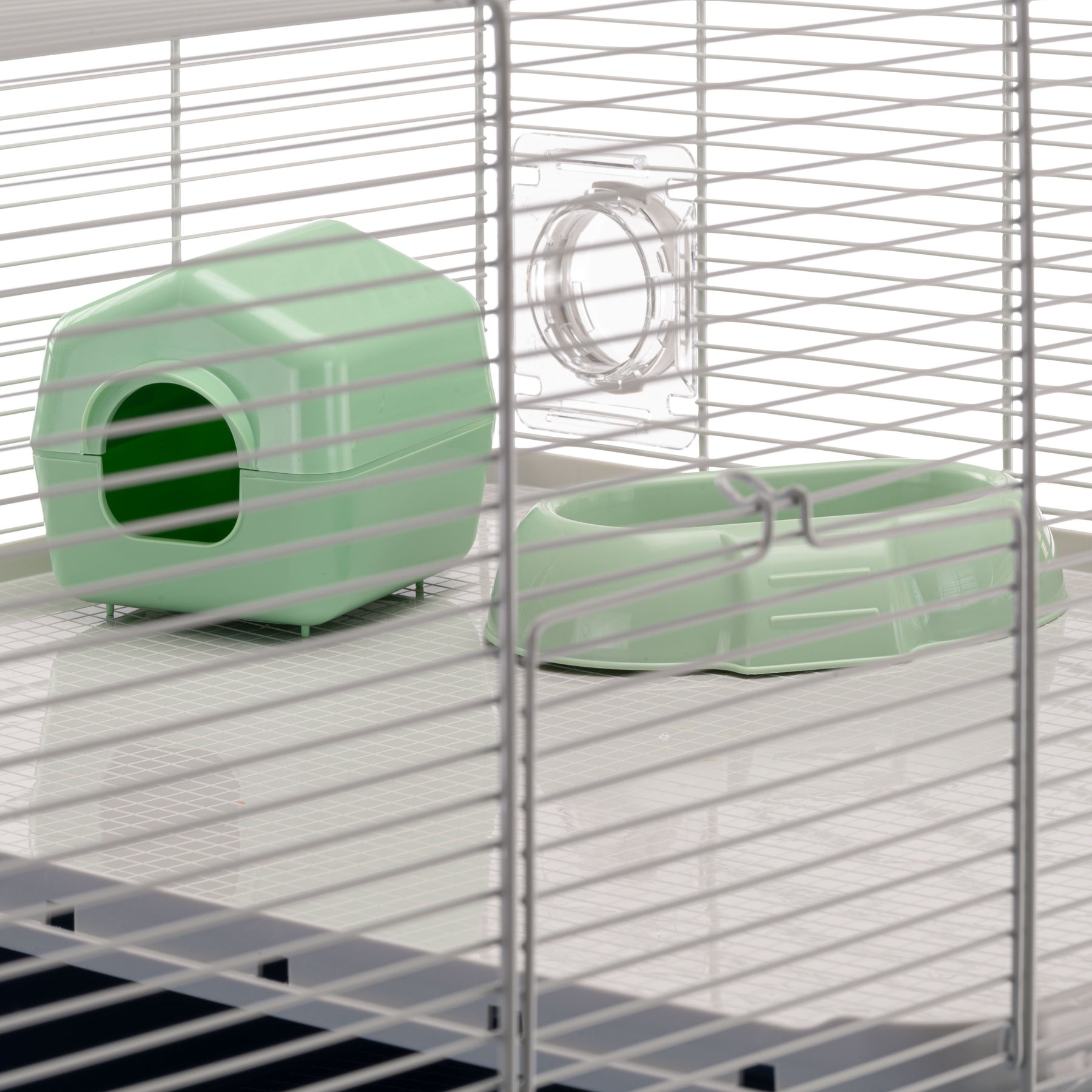 La structure est constituée d'un treillis métallique serré qui offre une plus grande sécurité à l'animal, l'empêchant de s'échapper et assurant une ventilation adéquate sans compromettre la visibilité. Cette caractéristique est essentielle pour maintenir un contrôle constant sur le bien-être de votre hamster ou de votre souris, tout en lui fournissant un habitat sûr et confortable.