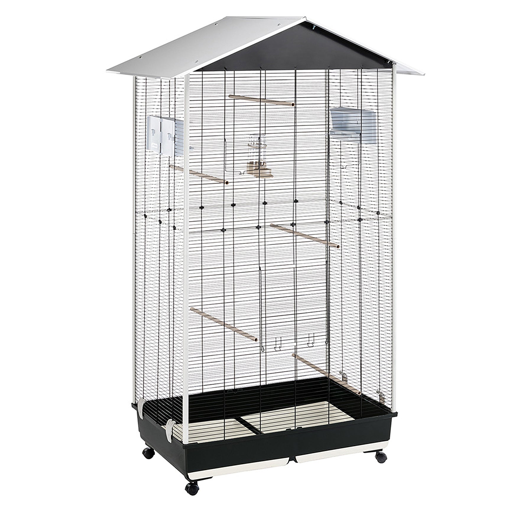 - Cage à oiseaux fournie complète avec roulettes pour faciliter le déplacement