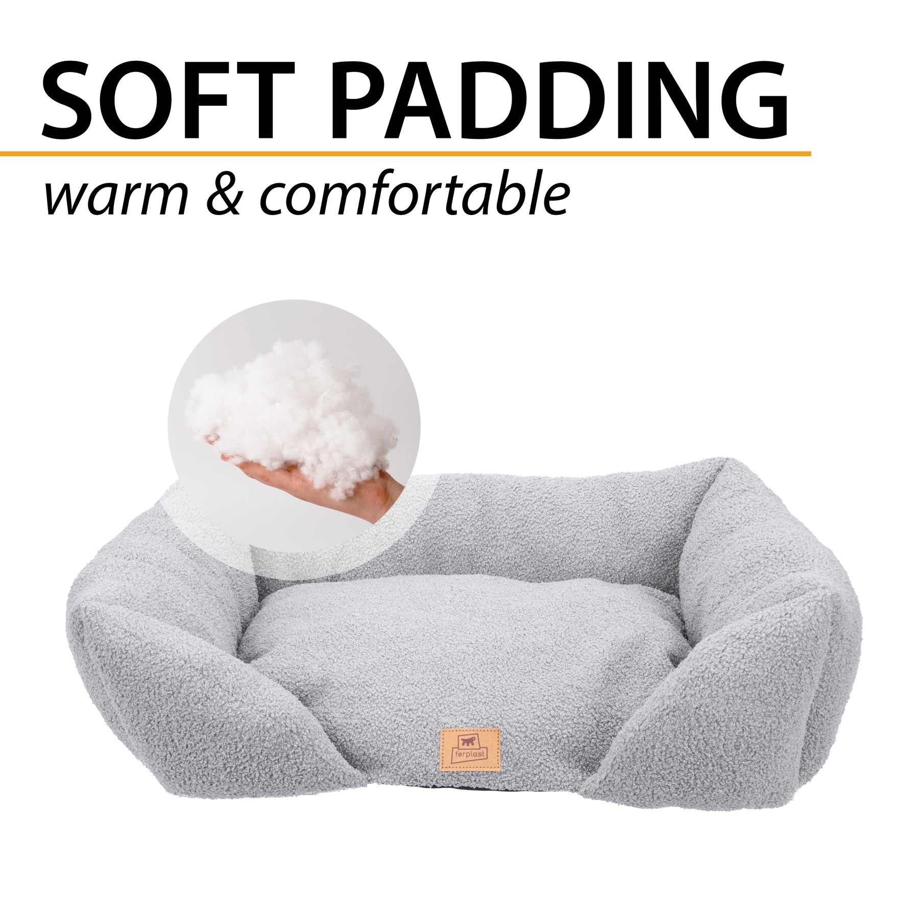 Sa forme rectangulaire avec entrée frontale abaissée facilite l’accès et la sortie de l’animal, tandis que les rebords élevés apportent soutien et un sentiment de sécurité, transformant le canapé en un refuge douillet et protecteur. Le rembourrage assure confort et détente, enveloppant votre compagnon à quatre pattes dans un véritable cocon de douceur.