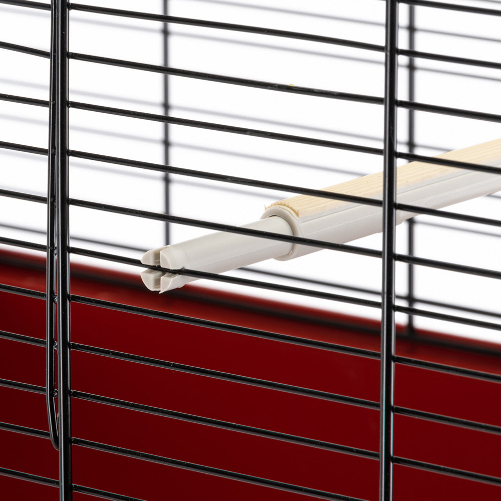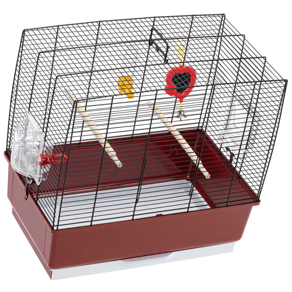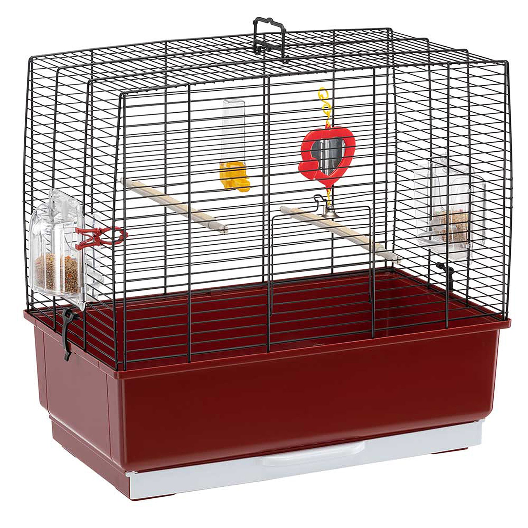Rekord 3 est une cage à oiseaux de taille moyenne avec une base rectangulaire, idéale pour canaris, oiseaux exotiques et autres petits oiseaux. Elle est livrée de les accessoires indispensables : perchoirs recouverts de caoutchouc, 2 mangeoires pivotantes amovibles Brava 2, un abreuvoir, 1 miroir et 2 pinces. Rekord 3 est disponible en 2 versions : grillage blanc ou noir. Vous pourrez choisir celle que vous préférez et la compléter d'un support de cage en plastique.