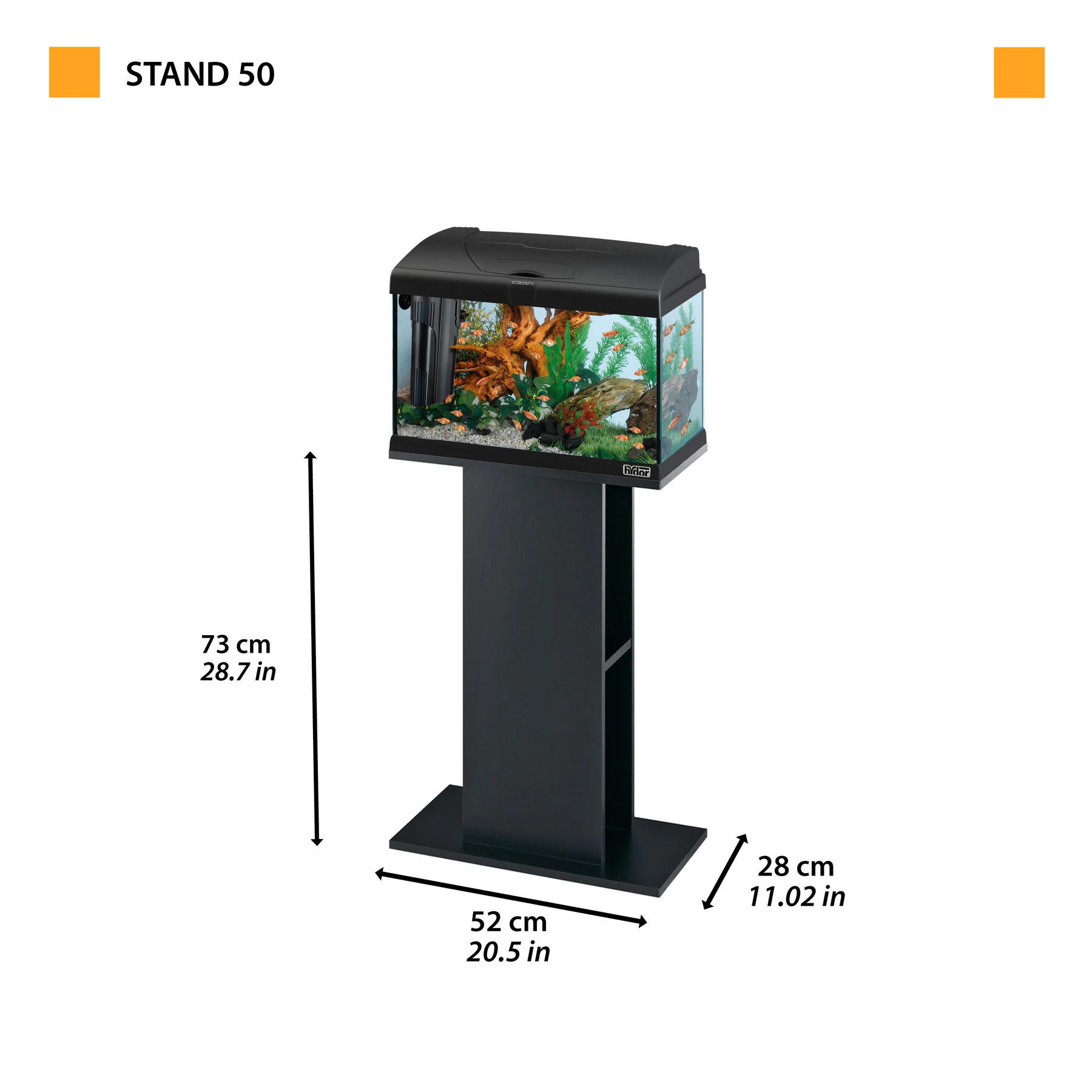 Stand 50 est le support idéal pour les aquariums Cayman 50 et Capri 50.