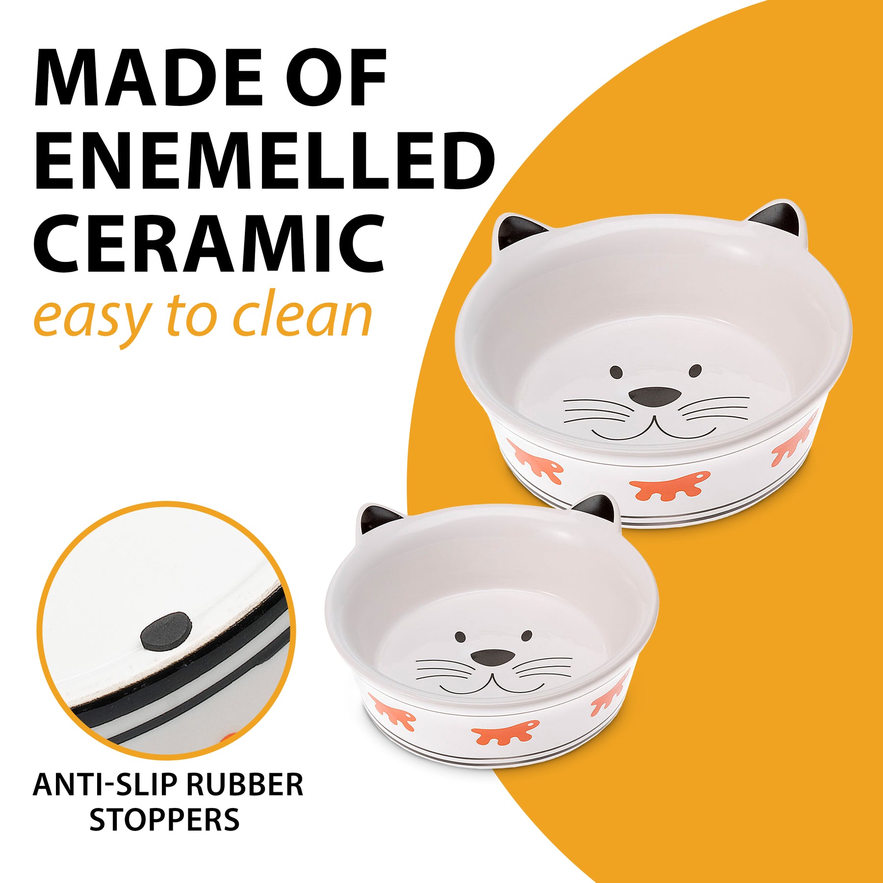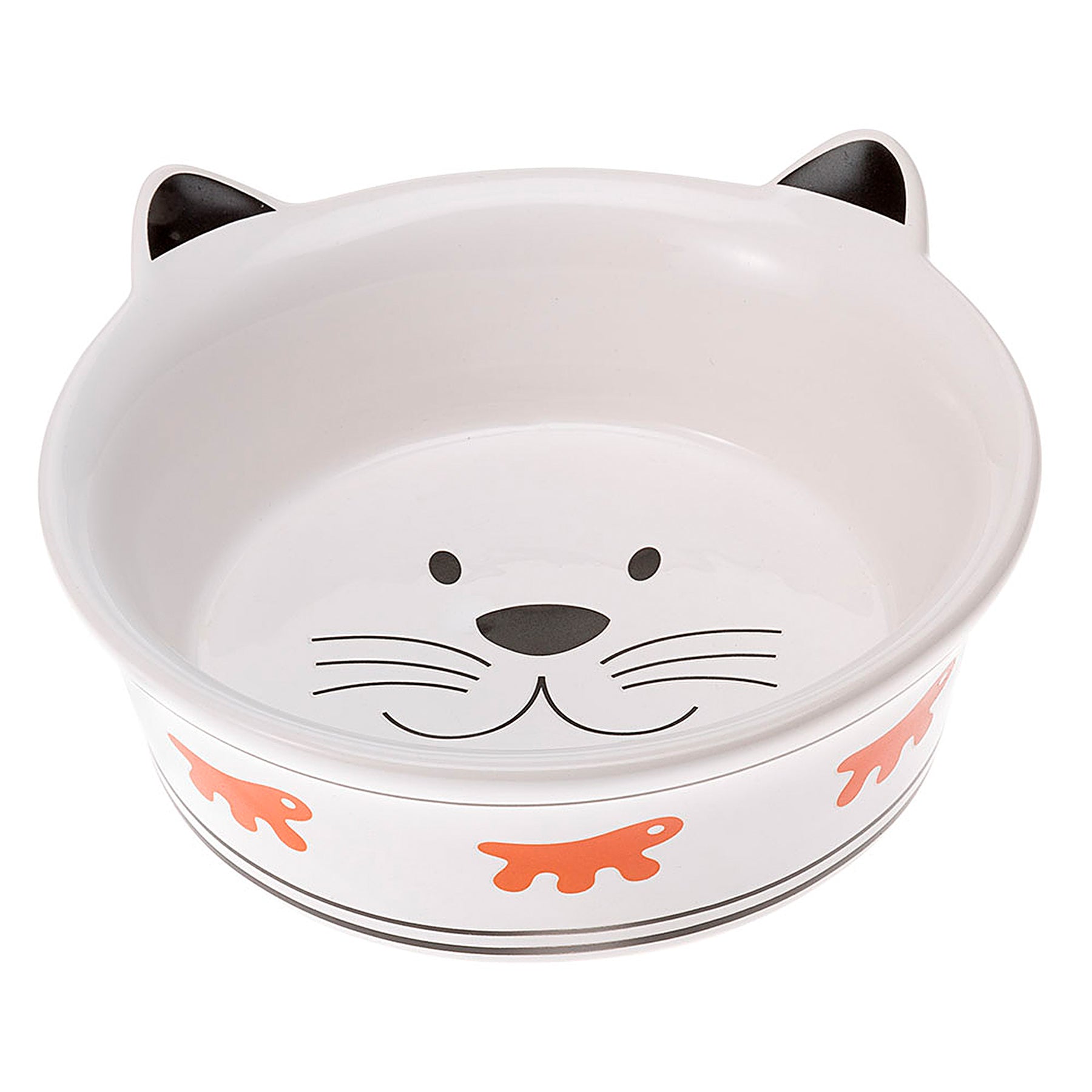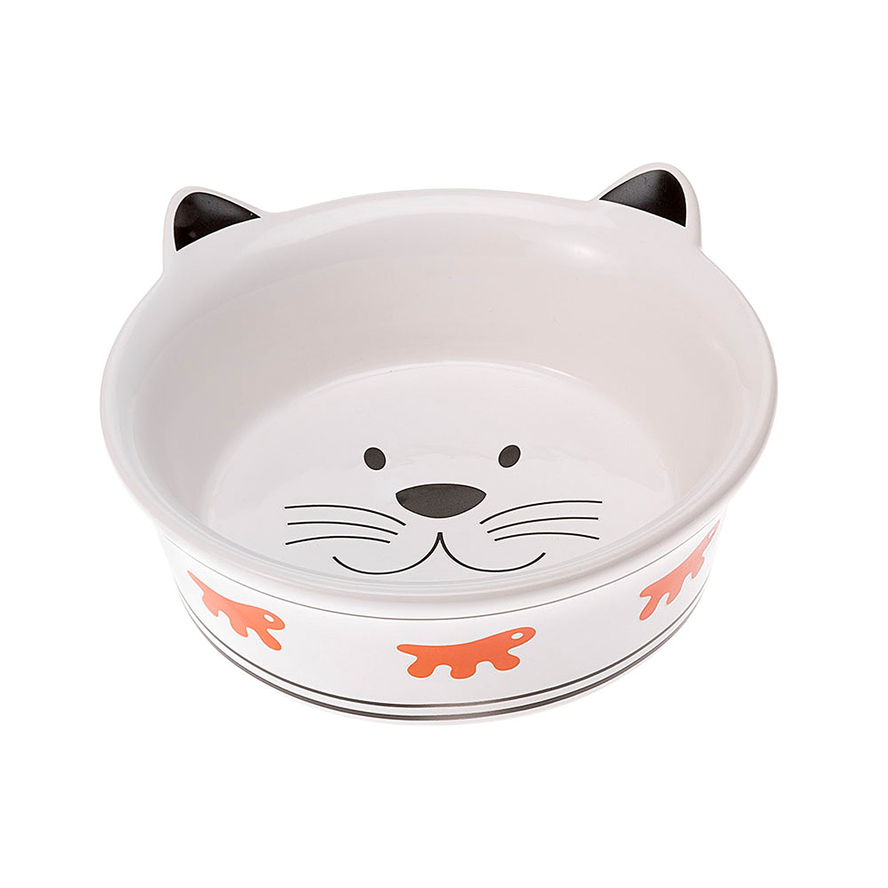 Une écuelle en céramique émaillée, jolie et originale, elle rappelle le visage du chat. Elle est idéale pour la nourriture sèche ou humide, biscuits à levure chimique ou de l'eau et est disponible en trois tailles de 0,15 à 0,50 litres. Elle des caoutchouc anti-dérapant.